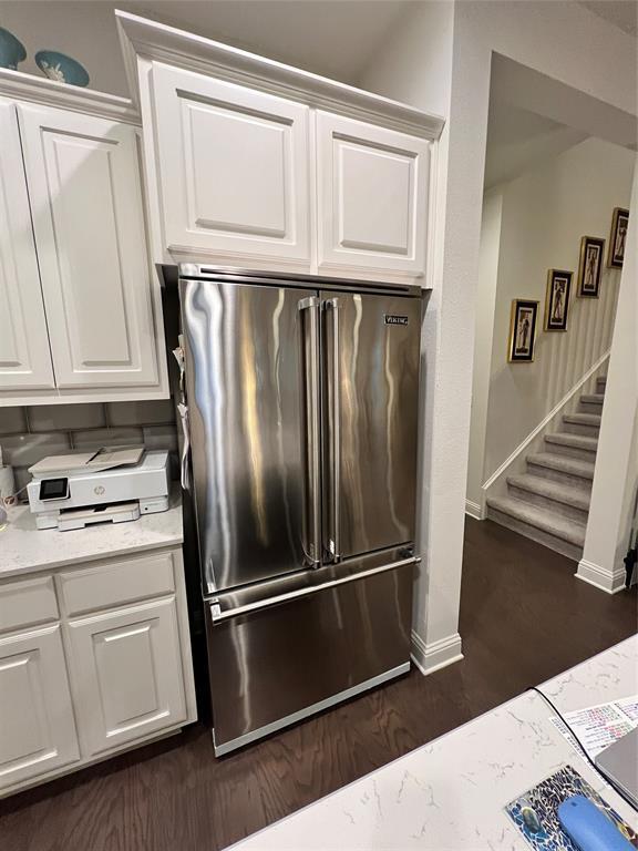 Exquisite two-story home in Avana with gorgeous hard wood floors, and beautiful upgrades throughout! Step inside and immediately sense the quality construction, functional floorplan, and bright natural light. Front entry could be a perfect home office, secondary living space or bedroom. Make your way to the kitchen and living room and be prepared to be amazed! Gorgeous finishes in the kitchen, granite countertops and a large center island that opens seamlessly to the dining and living areas! Viking Refrigerator stays with the property as well as the washer and dryer. The primary bedroom offers a serene retreat, a cozy bump-out seating area with windows and a spacious ensuite bathroom that features detailed tilework and excellent storage. Fabulous walk-in shower with oversized glass, bench seating and window details. Secondary bedrooms and bathrooms are equally well equipped, providing comfortable spaces for family or guests. Nice sized covered patio off the living room overlooks the fenced backyard. Upstairs offers a secondary bedroom and bathroom with an oversized living/gameroom/media room. Withing walking distance of Bear Creek Elementary and zoned Gorzycki Middle School and Bowie High. Conveniently located to tons of restaurants, shopping and grocery stores – everything you need within a few minutes. Multiple walking trails nearby and easy drive to the 45 toll or 1826. REFRIGERATOR, WASHER AND DRYER ARE NOT WARRANTIED MLS ID 1767144