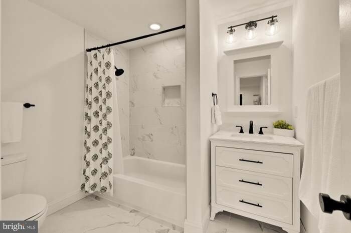 Property Id: 2363770 Fall in love with this beautifully updated 3 Bed, 2 Bath, Cape Cod featuring bonus 4th bedroom, open-layout family room addition, huge flat fenced-in backyard and modern sleek finishes throughout. *Open House This Saturday*. With a refreshing, bright, airy aesthetic, this home is completely renovated from top to bottom and has been meticulously maintained. All of this in a quiet, residential neighborhood 5 minutes to countless shops and restaurants and situated for easy commuting routes. Welcome to the cutest house on the block! *What makes this home stand out?* An exceptional floor plan that includes a front living room with white brick fireplace, leading to the spacious kitchen and open-layout dining and family room. The huge addition at the back of the home is walled with windows to allow ample natural light and flows seamlessly into the backyard. The first floor boasts two bedrooms, the second bedroom can function as a bedroom, nursery, office, or closet extension off the primary.