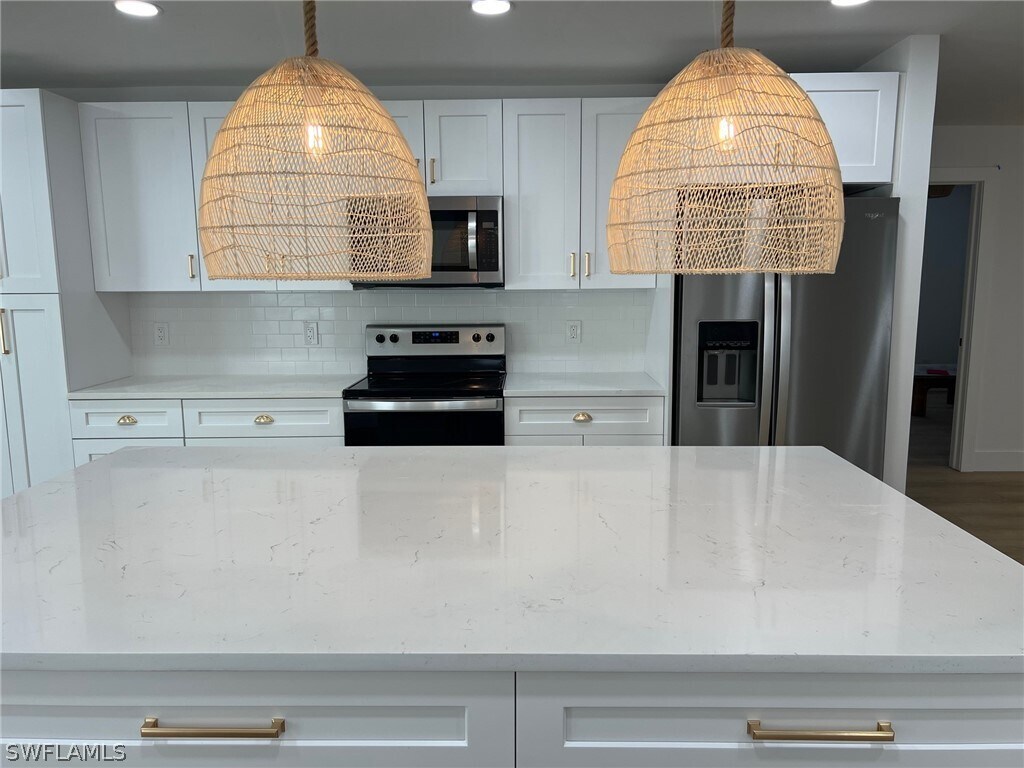 Welcome to your dream rental in Naples Park! Newly renovated 3 bed,2 bath home with electric fireplace and a cute shed workspace. Everything in this home has been replaced...new windows,new doors,new HVAC,luxury vinyl wood plank flooring,completely reimagined kitchen including a wine cooler. No detailed was overlooked,even an epoxied garage floor. This charming residence combines modern amenities with costal flair,offering an ideal retreat for those seeking luxury and convenience. Home features include: electric fireplace,cute shed,newly renovated,custom lighting,prime location,outdoor living on the screened lanai,garage parking.