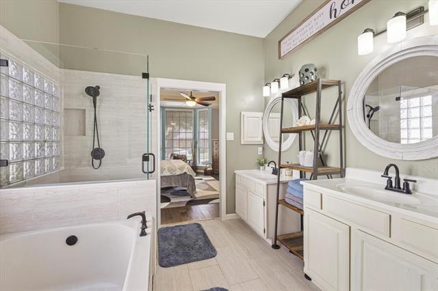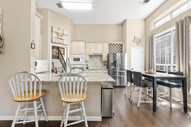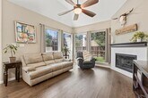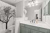 Spacious lease opportunity with a bright and open floor plan, boasting four bedrooms and two and a half baths. As you enter, you're welcomed by an airy layout connecting the formal living and dining areas seamlessly. The kitchen flows gracefully into the family room, complete with a gas fireplace. The generously sized master bedroom is conveniently located on the lower level, offering ample space for a cozy sitting area. The master bath is well-appointed with double vanities for his and her, a separate tub and shower, and a walk-in closet. Outside, the charmingly landscaped side yard-patio combination creates a perfect setting for gatherings and entertaining. Additional features of this residence include two Nest thermostats, ensuring comfortable temperatures on both upper and lower floors, a Ring Doorbell for enhanced security, ongoing pest service, and fresh paint in most of the living and bedroom spaces prior to your move-out. Home will be professionally painted and cleaned.