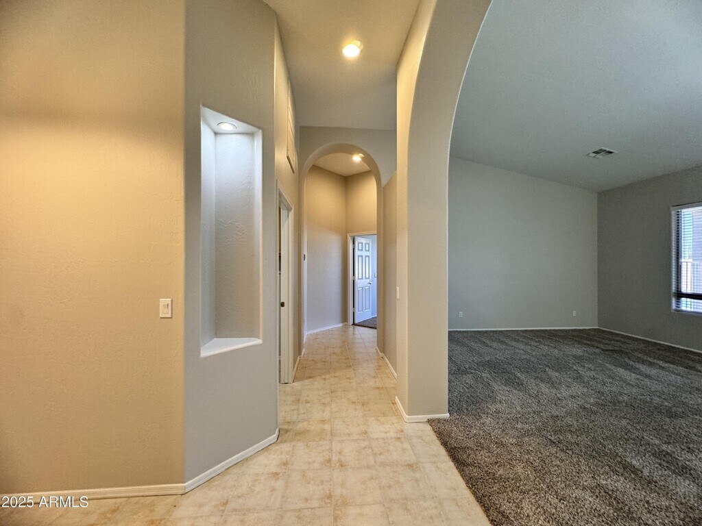 Single-level 4-bedroom home with a 3-car garage and split floor plan. Living and dining spaces flow into a bright family room with vaulted ceilings. The updated kitchen (2024) offers generous cabinetry,center island,and an open layout overlooking the main living area. The primary suite includes a private bath with separate tub and shower. Secondary bedrooms provide flexible space for family or guests. Outside,enjoy a private backyard with pool and heated spa,with pool service included in rent. Convenient Gilbert location close to shopping,dining,schools,and freeway access.