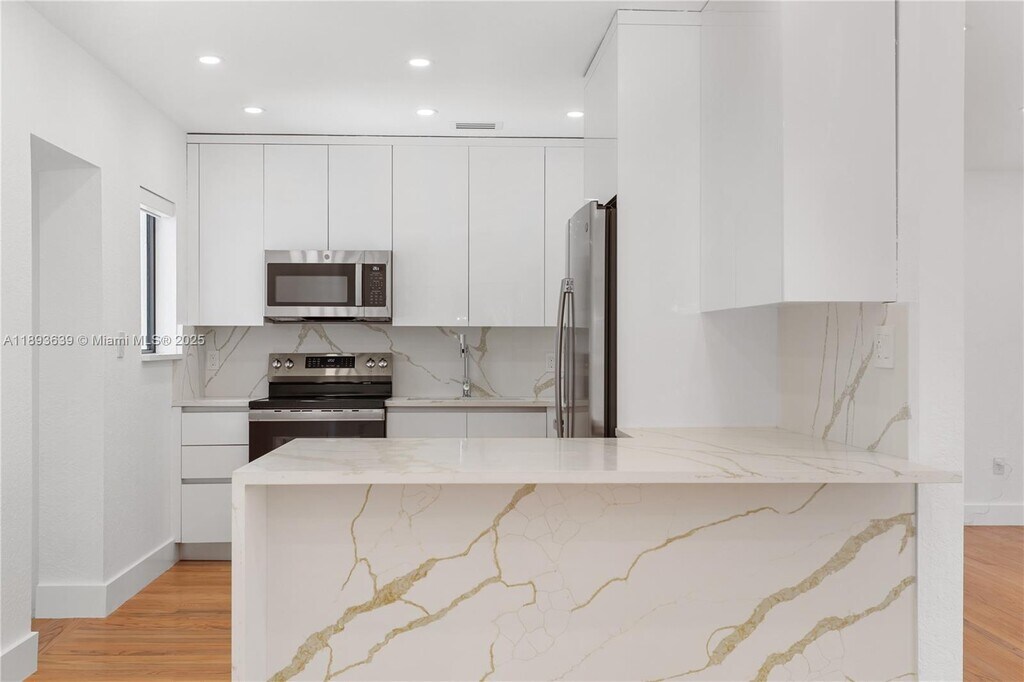 Totally Renovated & Spacious 3-Bedroom, 2-Bath Home Impeccably updated with gleaming hardwood floors & bright open layout. Living and dining flow seamlessly to modern kitchen stainless steel appliances, quartz countertops, breakfast bar. Master suite is extra spacious, expansive his and hers walk-in closet, and ultra-modern bath with double vanity. Synthetic lawn no lawn care needed, a large tiled patio complete with a built-in bar for entertaining. Impact glass windows/doors no need for shutters Fully fenced secured property Close to Nicholas Children's Hospital, central location shopping & easy access to highway MUST SEE IT WON'T LAST Freshly painted interior throughout Pet-friendly Tenant Requirements: Applicants must submit credit and background information for review.