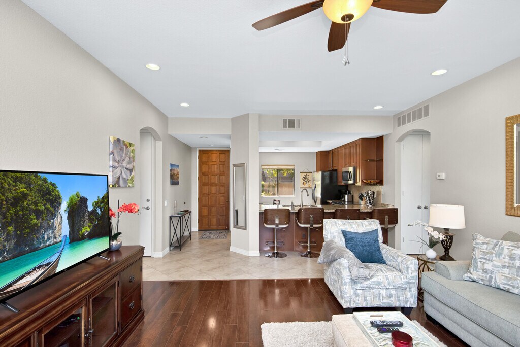 Welcome to your desert escapean updated 2-bed,2-bath condo in the sought-after Desert Princess Country Club. Ideal for a vacation getaway,this home offers stunning golf course and mountain views. The spacious layout features two private en suite bedrooms,perfect for guests or tenants. Enjoy indoor-outdoor living with an open living area that flows to a private patio. Resort-style amenities include pools,tennis and pickleball courts,a renovated gym and spa,and an on-site restaurant. Golfers love the 27-hole championship course with discounted access. Monthly rent is $4,200,Available from February 1st 2026 to April 2026. and includes cable TV,Wi-Fi,and trash removal. Renters insurance is required.
