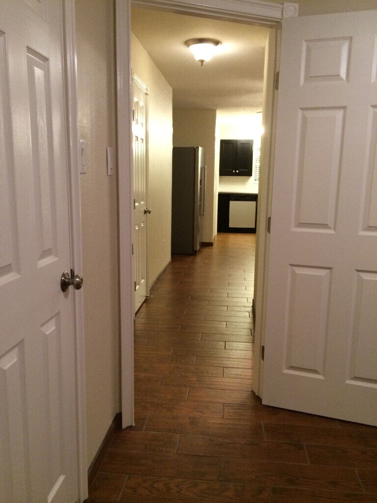 Newly remodeled 3 BR, 1.5 Bath, 2 Car Garage. Nearly everything has been updated in this home. New kitchen with modern cabinets and stainless steel appliances- built in microwave, gas range and oven, and dishwasher. Ceiling fans in Living Room, Dining Room, and all 3 bedrooms. New light fixtures throughout entire house. All windows have 2 inch white wood faux blinds (white). Wall and ceiling texture with fresh paint throughout house and garage. All doors are 6 panel doors with door casing and trim (white). Porcelain tile throughout house -- that looks like real wood floors (very nice)! Both bathrooms have new vanities, mirrors, toilets and tiled walls. The main bathroom has new tub/shower also with new tiled walls. Large spacious patio and fenced backyard. Close walking distance to Woodland Hills Elementary School (2 blocks). If have pets, will require interview with your pet to determine if will allow the pet. Also non-refundable pet deposit. The tenant that snatches up this home will be responsible for the lawn maintenance (mowing and trimming). New roof and facia and outdoor painting to be installed in the next 2 weeks.