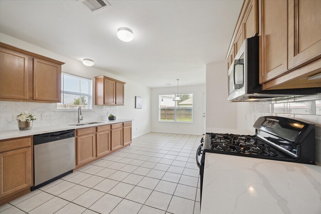 Updated 4 bedroom 2.5 bath home with an attached two car garage. Great floor plan. Laminate and tile floors throughout. NO CARPET! Kitchen boasts recent beautiful quartz counter tops and tile backsplash. Stainless steel/black appliances. Nice spacious Family room with tons of natural light. Primary bedroom with tray ceiling and en-suite bath with recent quartz counter tops. Nice sized secondary bedrooms. Insulated windows. Utility room in house. Powder bath downstairs. Recent interior paint. The property also features a spacious fenced backyard,ideal for children to run and play. This home is zoned to Cora Thomas Elementary which is a short walk or 2 min drive. Walnut Creek is only a few minutes from dining and shopping in the Brazos Town Center and a short drive to Sugar Land,Houston,Hospitals,and many other places! Move in ready. Yours to call home. MLS# 10264222