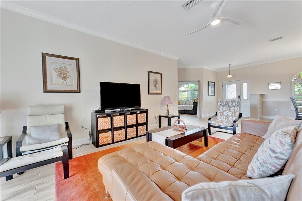 Rented Jan-March 2026. Waterfront Pool Home with Full “Class A” Golf Membership in Tara Golf & Country Club! Welcome to this beautifully maintained 2-bedroom + den,2-bath,2-car garage home offering breathtaking water views and stunning sunsets from your private pool area. Located in the highly sought-after Tara Golf & Country Club,this home includes a full “Class A” golf membership — a dream come true for any golf enthusiast! Inside,you'll find oak-look tile flooring throughout,combining elegance with easy maintenance. The open-concept kitchen features granite countertops,stainless steel appliances,wood cabinetry,and a pantry,perfect for entertaining or everyday living. The spacious primary suite boasts his and her walk-in closets,sliding glass doors to the pool,and a luxurious bath with wood cabinets,granite counters,a roman walk-in shower,and a soaking tub. Work from home in the den,complete with custom built-in desk and cabinetry. Other upgrades include high ceilings,crown molding,plantation shutters,and rollaway storm shutters on the lanai (installed in 2020) for peace of mind during storm season. Resort-style amenities include an 18-hole championship golf course,lap pool,fitness center,Har-Tru tennis courts,pickleball,bocce ball,sauna,hot tub,driving range,putting green,pro shop,and an elegant clubhouse with fine dining,grill room,and ballroom. Plus,enjoy a vibrant social calendar year-round! All of this is just minutes from I-75,UTC Mall,Benderson Park,SRQ Airport,Jiggs Landing,top-rated dining and shopping — and just a short drive to award-winning Gulf Coast beaches. Don’t miss this rare opportunity to rent in paradise — located in one of Bradenton’s premier golf communities! MLS# A4665021