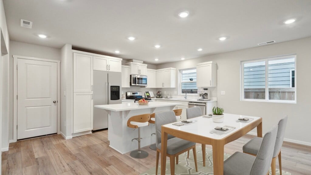 Location: Situated in the desirable Smith Creek neighborhood in Woodburn, this Brand new townhome enjoys a prime location. Amenities: Enjoy the outdoors with walking parks and a play area right near your doorstep. The community atmosphere is super inviting! Floor Plan: The two-story layout provides an exceptional floor plan and elevation for comfortable living. Furniture shown are for reference but not included. First Level: The main level features an open floorplan: Great Room: Perfect for entertaining or relaxing. Kitchen: Equipped with a quartz countertop and island. Dining Area: Beautifully designed for family meals. Half Bath: Convenient for guests. Laminate flooring throughout adds a touch of elegance. Plenty of cabinets provide ample storage. There's even a Patio and Side yard to relax. Second Level: Upstairs, you'll find: Spacious Master Bedroom: Complete with a walk-in closet and an en suite bathroom featuring a standing bath and dual sinks. Three Guest Bedrooms. Ideal for family or visitors. Brand New Appliances: Every appliance is fresh out of the box. Gas range Microwave Dishwasher Refrigerator Washer and Dryer Air conditioning unit Parking: Two-car garage for your vehicles with driveway and plenty of street parking available. Community Amenities: Beyond your doorstep lies a vibrant community. Explore parks, Trails and walking/biking paths within the community. Nearby Facilities: Need urgent care? Multiple Urgent cares are minutes away. Craving a quick bite? Chick-fil-A beckons. And for your everyday needs, major shopping centers Walmart, Starbucks, and Walgreens are within reach. Plus, if you love shopping, Woodburn outdoor outlet is nearby to shop items from all major brands. Don't miss this opportunity to experience the fusion of convenience and luxury. Contact us today to schedule a viewing!