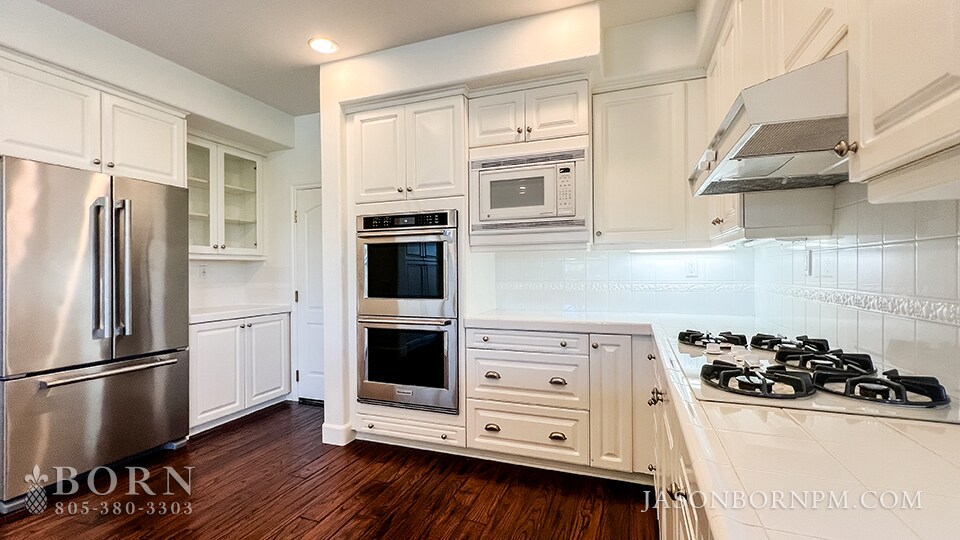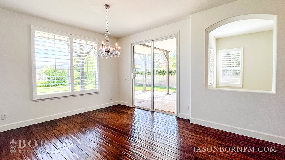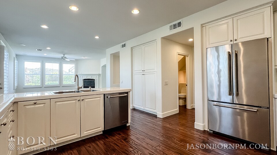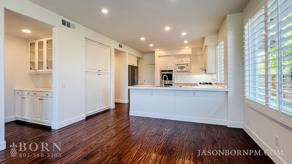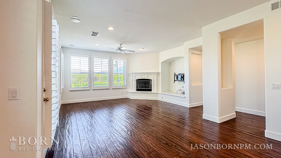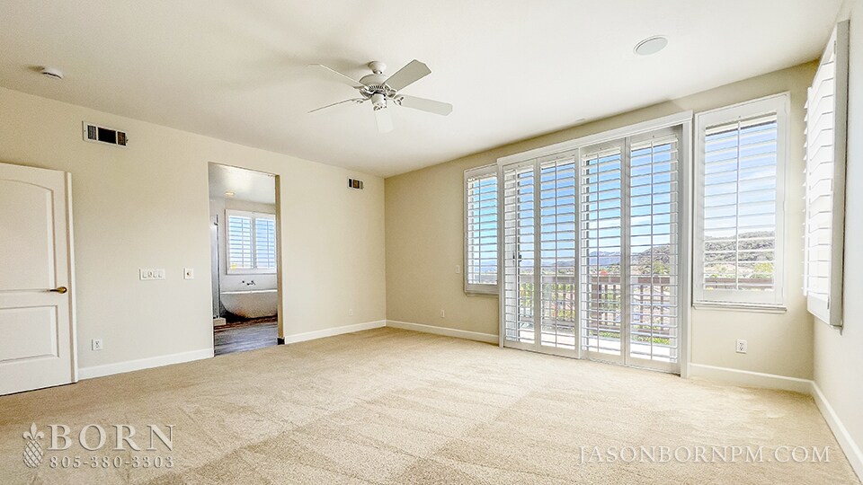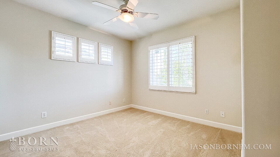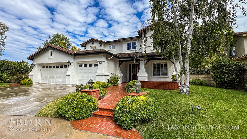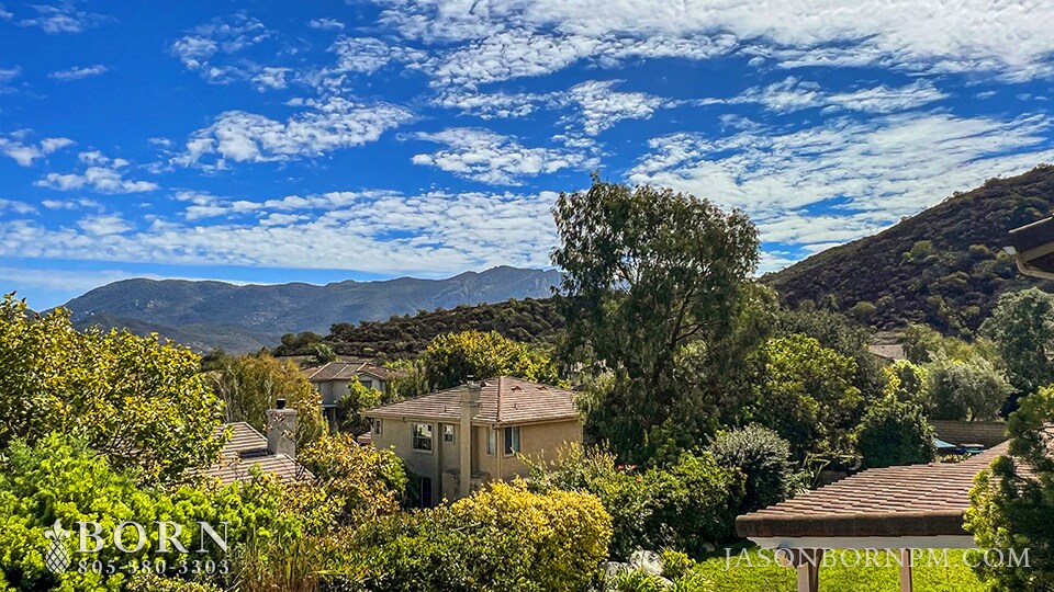 Delightful Dos Vientos Home for Lease See our website (watermarked on photos) for all photos, details, terms and disclosures. Or text 8 0 5 3 8 0 5 2 5 6 Located in the prestigious Dos Vientos community of Newbury Park, this stunning two-story home offers an exceptional lease opportunity in one of the area's most desirable neighborhoods. From the moment you enter, you'll be welcomed by soaring vaulted ceilings and a bright, open floor plan. The modern kitchen is a chef's dream, complete with a center island, ample cabinetry, a breakfast bar, and seamless flow into the dining and living areas—ideal for both entertaining and everyday living. The first floor also features a well-appointed bedroom with a full bathroom—ideal for guests or multi-generational living. You'll also enjoy a spacious den, a convenient laundry room with washer and dryer, and a guest powder room located near the kitchen. Step outside to a beautifully landscaped backyard with a spacious patio and panoramic, elevated views of the Conejo Valley and “Boney Mountain”—an ideal setting for relaxing, dining al fresco, or entertaining. The yard also includes lush greenery and a designated area for basketball or recreation. Upstairs, the luxurious primary suite is a true retreat, boasting sweeping views, a spa-like en suite bathroom with a soaking tub, separate shower, dual vanities, and a generous walk-in closet. The second floor also offers two additional well-sized bedrooms, a shared full bathroom, and a large bonus room perfect for a home office, media room, or play area. This move-in ready home combines comfort, style, and space in a premium location close to top-rated schools, scenic parks, and convenient shopping. Don't miss the chance to lease this exceptional property—schedule your private showing today. HOME FACTS: 4 bedrooms, 3 bathrooms, 1 half bath 3,178 square feet interior space 3 car garage and lots of storage space Solar panels installed on roof Built 1998 FEATURES: Backyard balcony and patio views Kitchen includes appliances: refrigerator, dishwasher, stovetop, oven, and microwave Vaulted Ceilings and lots of storage and sunlight Fireplace in dining room is vanity only Hardwood and carpet flooring throughout Beautiful tile flooring in primary suite bathroom and closet area Washer & dryer in utility room on 1st floor Heat/AC fully functional LOCATION & NEIGHBORHOOD: Located in the desirable community of Dos Vientos Blocks away from Harvest Moon/Heritage Community Park Recreational hiking, horseback riding and mountain biking nearby Just a mile from State and National Parks Community restaurants and grocery within 1 mile Only 6 miles to Cal State University Channel Islands SCHOOLS (Public - tenants to verify) Sycamore Canyon School Cypress Elementary School (optional) Sequoia Middle School Newbury Park High School TERMS AND DISCLOSURES: Lease is 11 ½ months Excellent credit only Home is solar powered and connected to Southern California Electric company Renter's insurance required, naming owner as “Additionally Insured” Pets Apply Policy - See Pet Application Washer/Dryer (no warranty) Fireplace is non operable, vanity only Forced Air Gas Powered Heater Landscape Maintenance Included Tenant to pay ALL utilities: Electric & Gas & Garbage & Water/sewer No Smoking / No Vaping Security Deposit = 1.5 times Rent subject to excellent credit Application Fee = $50 per adult Applicants must have a Born Management staff member show them the property to qualify. If approved, at least one applicant must have seen the property in person before signing any lease agreement. Prices, requirements, terms, offers, and availability are all subject to change without notice. All information deemed reliable but not guaranteed or warranted and should be independently verified. Home will be leased unfurnished, some interior paint colors may have been recently changed and updated. Born Real Estate & Property Management CA License: 01972685