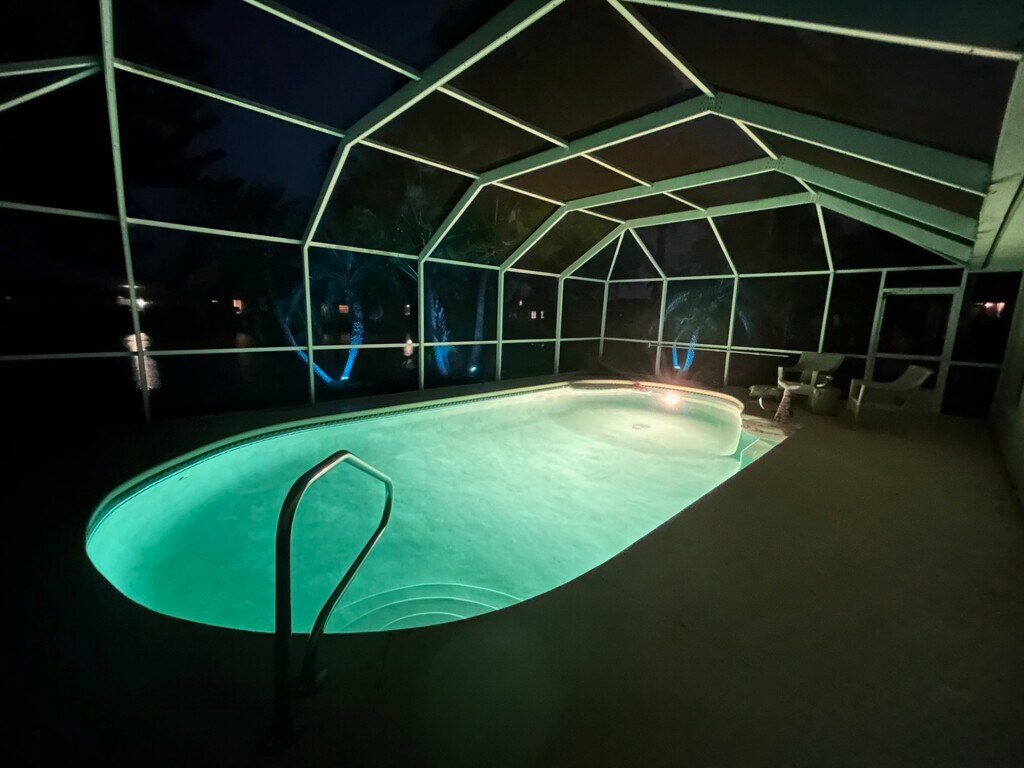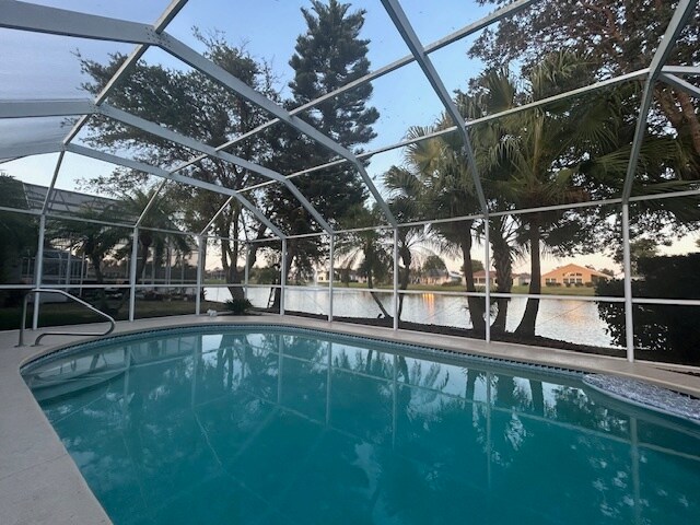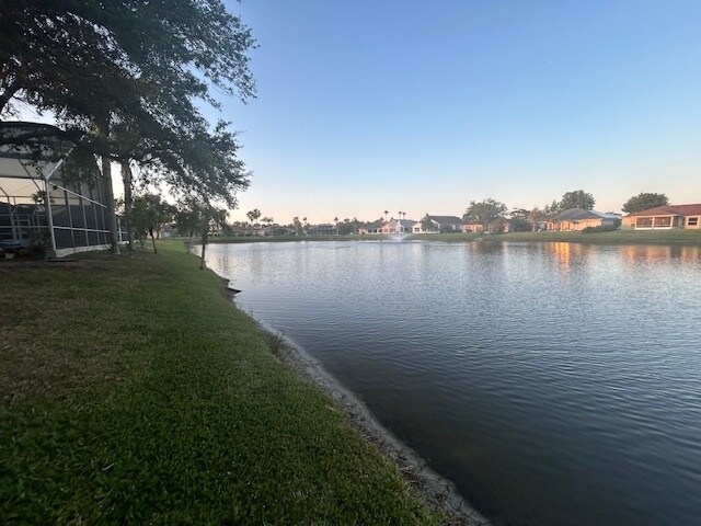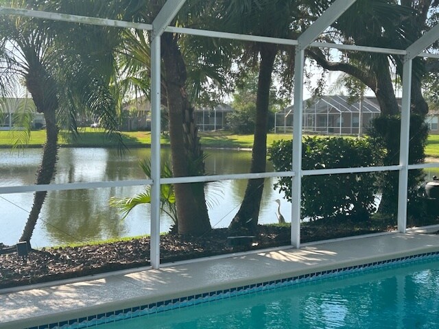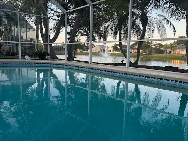 Beautiful Stonebridge Floor Plan POOL home set on a gorgeous LAKEFRONT lot in the popular community of Waters Edge. This home has great curb appeal with tropical landscaping. Step inside to a bright & spacious foyer that features a Formal Living Room or Den on one side and the Formal Dining Room on the other. Straight ahead the foyer flows into the main living areas with laminate flooring in the Family Room and tile in the Kitchen & Breakfast Nook. Sliders off the Family Room lead to the covered Lanai & pool area w/beautiful lake views! The cook in your family will love the modern kitchen that comes equipped with a full Stainless Steel appliance package, separate pantry, breakfast bar and nook for casual dining. The Owner's Suite boasts a private bath w/garden tub & walk in shower, a linen closet. Pool and Landscaping maintenance included. Please call or email for viewings.