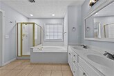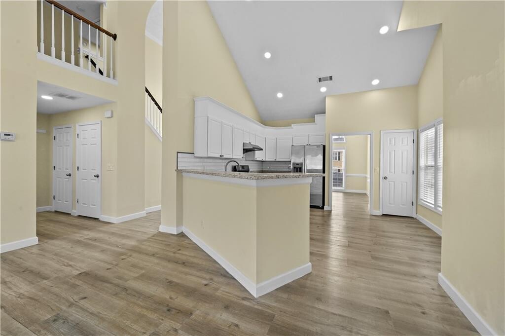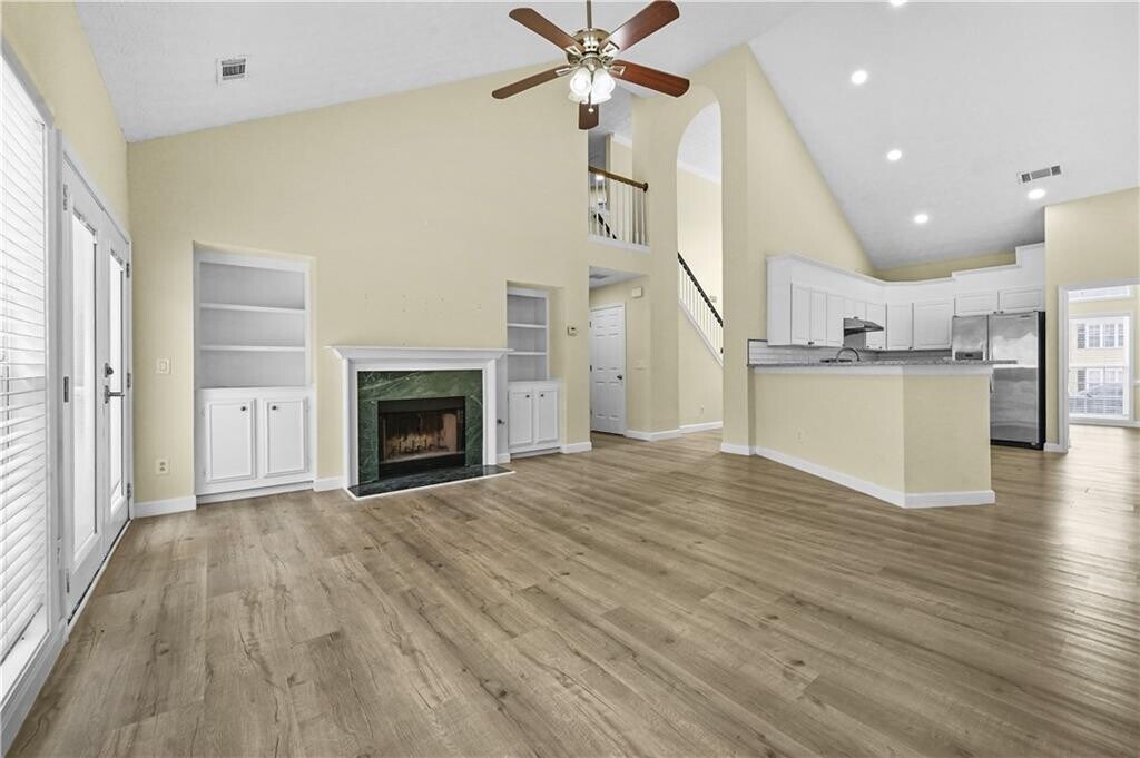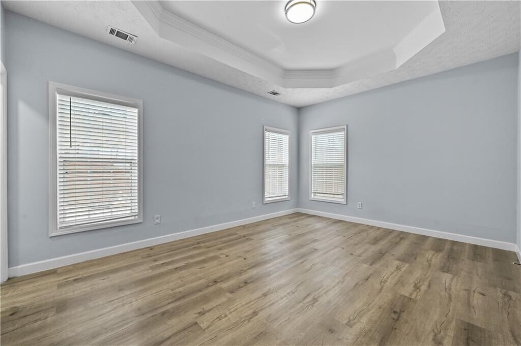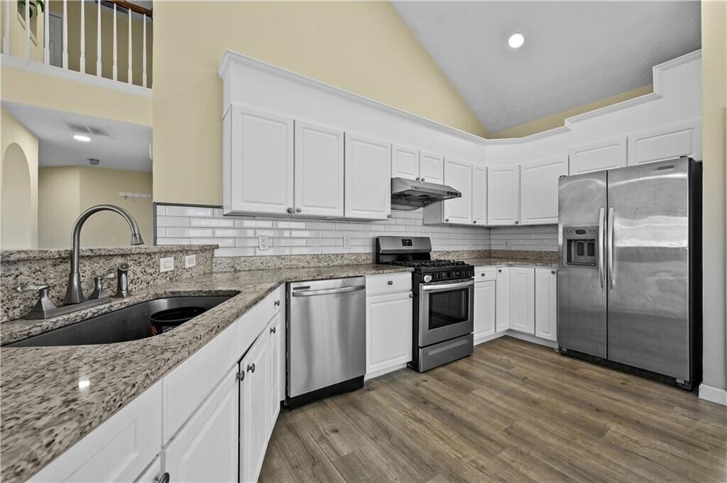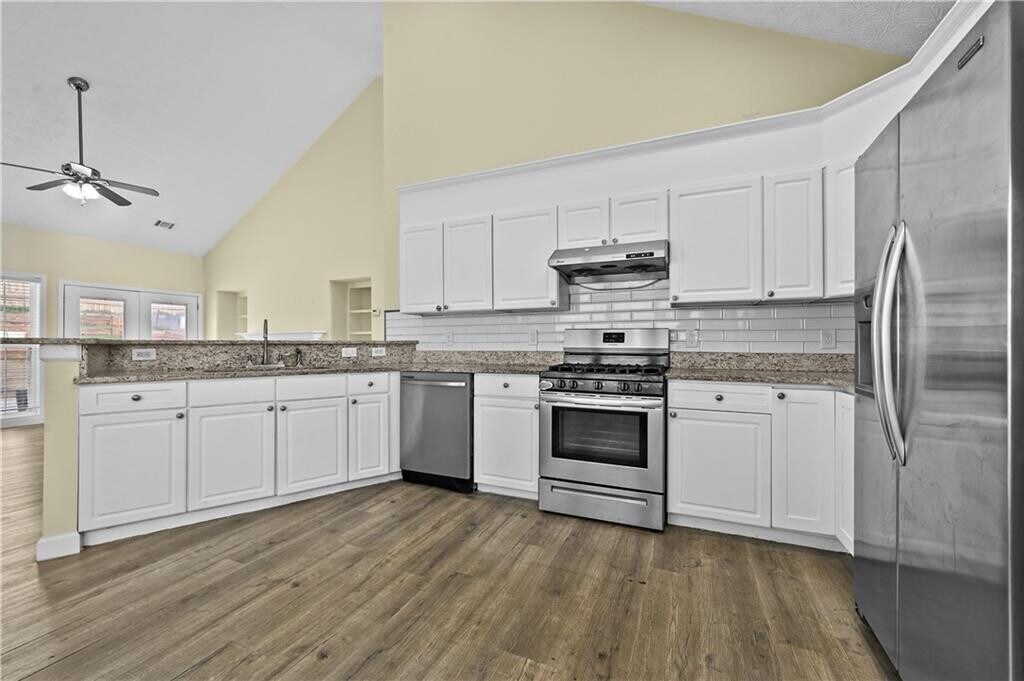 Welcome to this beautifully maintained home featuring a highly desirable master suite on the main level! The bright and open floor plan showcases soaring ceilings,abundant natural light,and stylish LVP flooring throughout the main living areas. The spacious family room offers a cozy fireplace with built-in shelving and flows seamlessly into the updated kitchen complete with white cabinetry,granite countertops,subway tile backsplash,stainless steel appliances,and a breakfast bar perfect for entertaining. The main-level owner’s suite features tray ceilings,a large walk-in closet,and a spa-like bath with double vanities,soaking tub,and separate shower. Upstairs you’ll find additional generously sized bedrooms and flexible living space. Enjoy outdoor living with a private patio and fenced backyard. Conveniently located near shopping,dining,and major highways,this home combines comfort,style,and functionality—don’t miss this fantastic rental opportunity! MLS ID 7723033