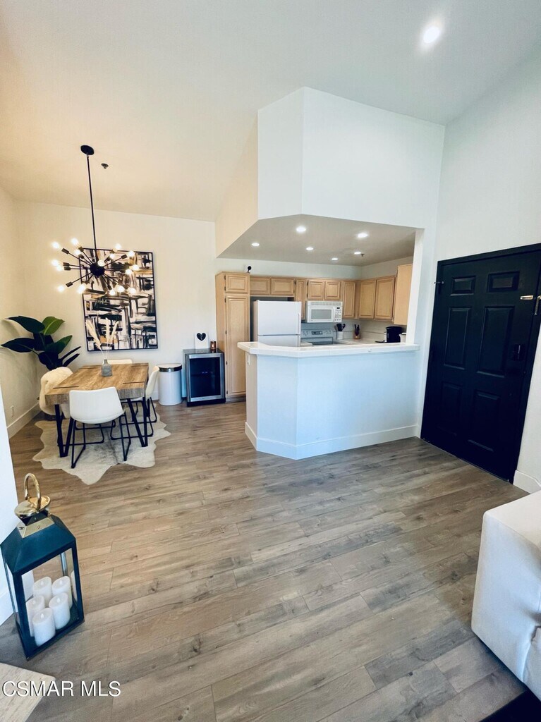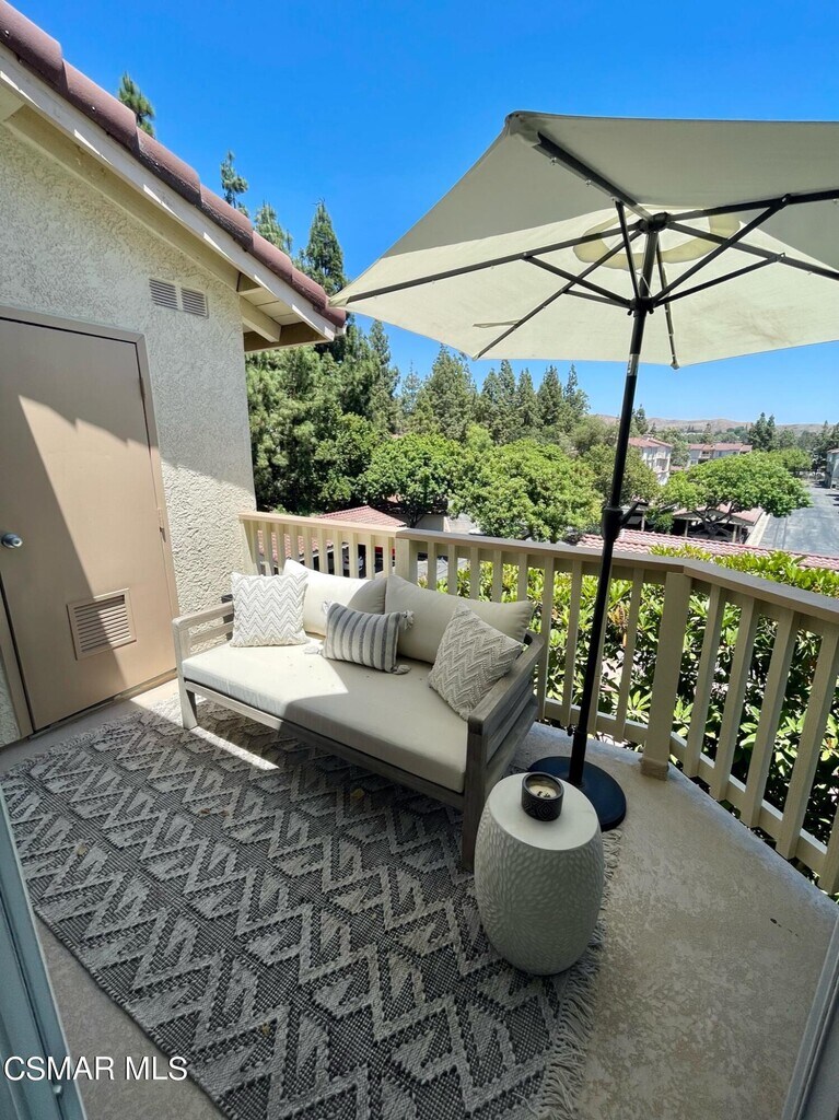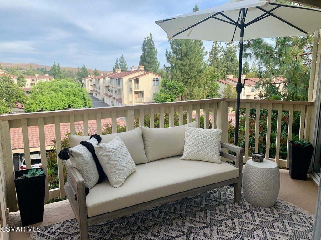 Welcome to this beautifully remodeled (just in 2019) open floor plan condo, located on the top floor offering an abundance of great natural lighting as well as the gorgeous mountainside view. Upon entry you are greeted with neutral, plank flooring, recessed lighting, high 20ft+ ceilings and smooth ceilings create a nice sense of space. The one bedroom suite features a large walk-in closet with organizers and slider access to the patio where you can unwind and take in the lush green scenery. The bathroom has been completely gutted and remodeled and features a large stall shower, marble stone topped vanity, an LED backlit vanity mirror and a chic barn door closure. The fireplace also has been updated for a fresh, modern look. You'll be hard pressed to find a better location than this. The balcony floor and railing were redone by the HOA in 2021. The spacious balcony also features a storage closet with washer and dryer. Internet and cable are included along with a Nest smart thermostat and Nest camera doorbell that can be controlled with the Nest app. Shadow Ridge is located close to Oak Park schools, hiking trails and a dog park. Take advantage of the incredible resort-like amenities included with this stunning community. Enjoy the private lush walkways, or a game of volleyball, tennis or basketball on the sport courts. Gym amenities also included. Bask in that So Cal sunshine too at either of the 2 community pools and spas. Includes one deeded covered parking spot plus additional guest parking.
