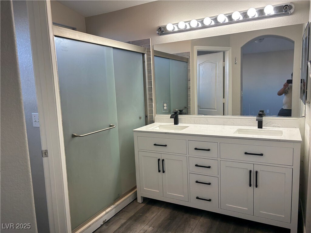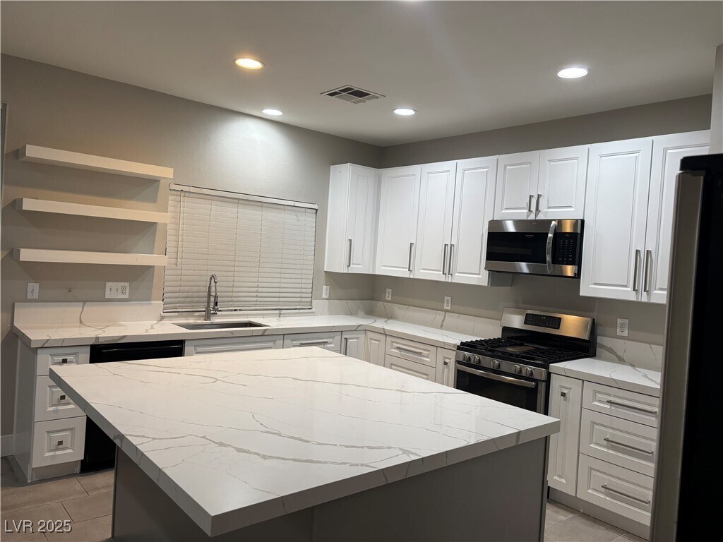 Fantastic 3 bedroom home with a 3 car garage located in a great part of Henderson, close to 215 freeway access. Home is newly remodeled and features all new kitchen cabinets, counters, tile, LVP flooring, baseboards, and fresh paint! This home features spacious bedrooms with the primary bedroom having a large walk-in closet. Home has tile throughout the downstairs area and features a low maintenance front and rear yard, with a covered patio in the rear, perfect for afternoon shade from the sun.