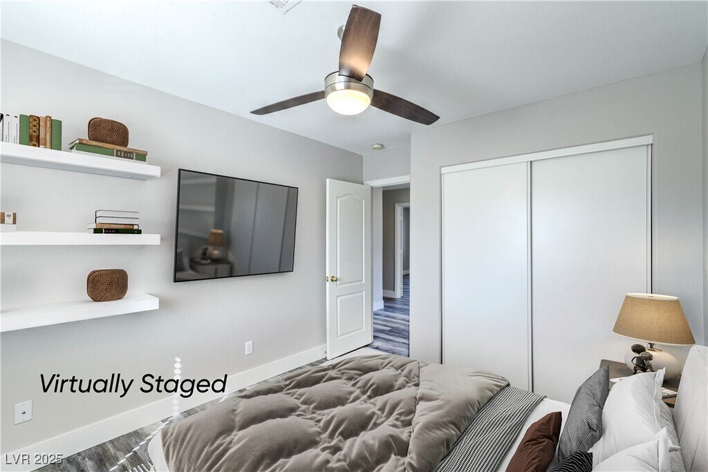 Fantastic 3 bedroom home with a 3 car garage located in a great part of Henderson, close to 215 freeway access. Home is newly remodeled and features all new kitchen cabinets, counters, tile, LVP flooring, baseboards, and fresh paint! This home features spacious bedrooms with the primary bedroom having a large walk-in closet. Home has tile throughout the downstairs area and features a low maintenance front and rear yard, with a covered patio in the rear, perfect for afternoon shade from the sun. Please note property is UNFURNISHED and photos demonstrate virtually staged furniture for your viewing pleasure!
