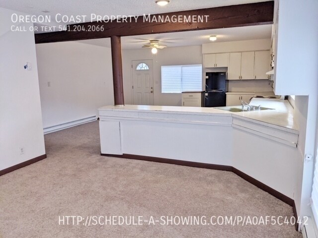 Oregon Coast Property Management Electric, water paid by owner! $1300 Monthly $2600 Security deposit This Cozy first-floor two-bedroom unit in a triplex is centrally located and close to shopping, dining and beach access. The unit features a large open kitchen/dinning/living area and has a large shared backyard. Month to Month Lease Term Tenant pays for Garbage and Gas Please review and agree to our policy and procedures before scheduling a showing. Stove