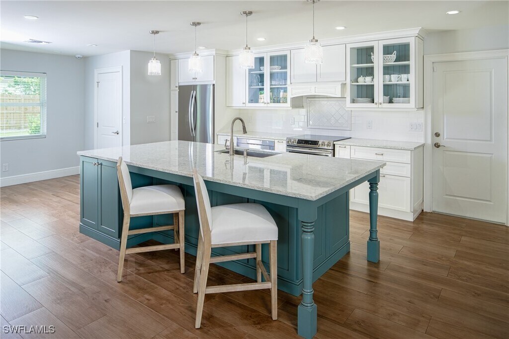 Experience luxurious coastal living in one of Naples' most sought-after neighborhoods—Coquina Sands. Nestled on an expansive,nearly half-acre corner lot,this beautifully coastal-cottage-style home offers the perfect blend of sophistication and timeless charm. Step inside to over 2,600 square feet of thoughtfully designed living space featuring three spacious bedrooms,each with its own en-suite bathroom,plus a custom-built office and an additional full bath which leads out to the pool. The open-concept floor plan welcomes you with abundant natural light,elegant finishes,and seamless indoor-outdoor flow. French doors lead you to the brand-new pool area,perfect for lounging,entertaining,or simply enjoying the serene surroundings. The fully fenced yard is enveloped in lush,tropical landscaping,offering exceptional privacy and a true sense of retreat. Whether you're enjoying a quiet morning coffee or hosting guests,the oversized lot provides a peaceful escape. Located within walking distance to the beach,Charleston Square shopping and dining,and just a short drive to Downtown Naples.
