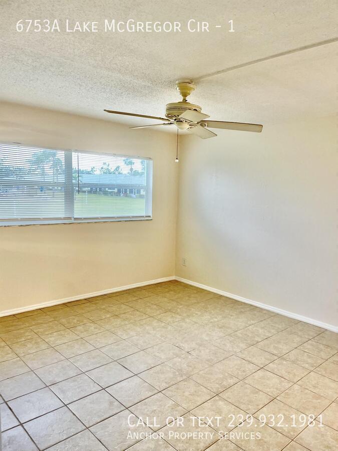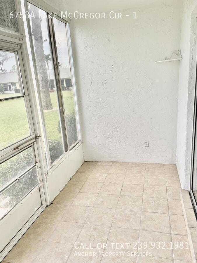 It's a hidden tropical oasis. This 55+ freshly painted 2 Bedroom 2 Bath first floor condo with a screened lanai (w/ storm windows) overlooking the community pool is available for an annual rental. (Images posted are prior to tasteful off-white fresh paint to give a quick preview of the space. There is spacious storage with both bedrooms having walk in closets. Fans are located in each room and the kitchen has decor lighting under the kick plates and upper cabinets for that elegant touch. The parking is convenient with a reserved space next to your front entryway. Join this community with regular activities poolside while using the kitchen area and screened, covered deck. Play cards, shuffle board, and socialize or go for a dip while surrounded with an acre of open green space, blue sky and a view of the lake. Conveniently located off of McGregor and Cypress. The location is perfect with all the drawings of SWFL just minutes away. The Cypress corridor featuring lakes park, Ruttenburg Park, Target, Costco, many restaurants within minutes. Fort Myers beach is open and is a 15 minute drive. Golfing, tennis, and pickle ball are just around the corner on Winkler Ave. A stacked washer/dryer is in the home at the edge of the kitchen. Rent is stated after tenant earning the $100/mo discount. Security deposit is $1,475. Minimum monthly gross income is 3 times the monthly rent. All utilities are the responsibility of the tenants. Pets are allowed, but have additional fees/rent. This home is professionally managed and maintained by Anchor Property Services, LLC. Call/Text Nicole @ to schedule a viewing. Available Now Anchor Property Services accepts more than one applicant simutaneously and selects the best applicant. There is a $35 application fee per adult. Schedule a showing appointment by texting/calling Nicole or emailing After preliminary approval from us, you will need to fill out an HOA application with our assistance and pay additional HOA applications and background checks. Cost furnished upon request. Minimum Approval Requirements Applicants need to be 55+ • No Evictions (< 5 years back) o 5-10 years may require an additional security deposit • No Felonies consisting of: o Felony with a weapon o Entering a property o Illegal Drug Sales (up to 10 years back) • No Sexual Predators or Offenders • No False or Omitted application information (truth is required) • Credit score o = or > 600 on Vantage 4.0 Score • Must Meet Minimum Monthly Gross Income (30% Gross income must equal advertised monthly rent) & other criteria based on past/current residential and employment history • Best application chosen based on applications received prior to final approval. If approved but not selected for home applied for you may be offered another available home or receive an offer for a home available in the future. Rev 7/4/15 • Prices subject to change without further notice. Applicants must meet minimum approval requirements. Homes have a maximum occupancy limit determined by the management. Please ask about this for the home you are considering. If the home has a septic system we ask for a fee for maintaining and replacing septic tank system; it is not a charge for usage.