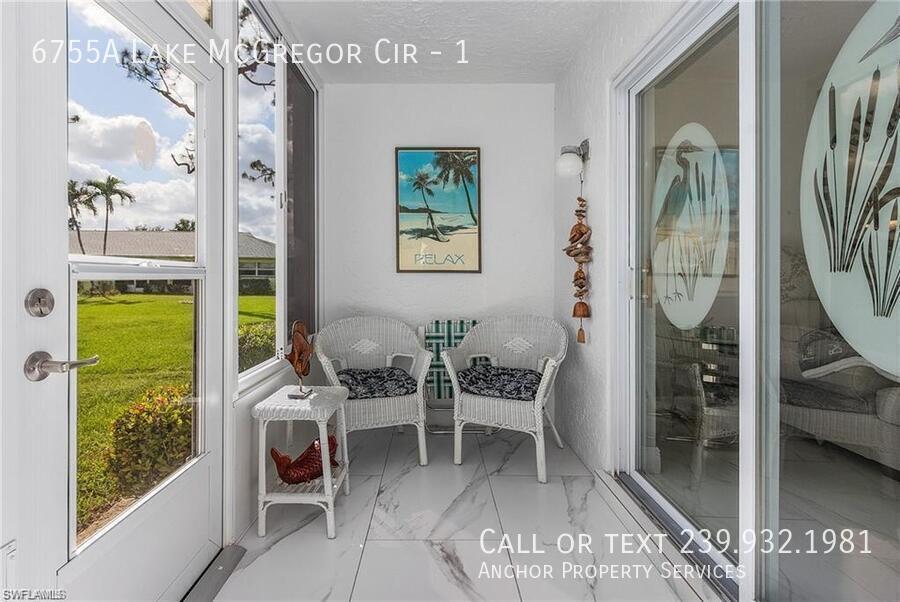 It's a hidden tropical oasis is fully remodeled. This 55+ freshly painted 2 Bedroom 2 Bath first floor condo has 18"x30" italian marble style tile throughout. The kitchen's undermount lighting, soft close drawers, and large european stainless steel sink will make you feel right at home. Bahama shutters adorn the windows with fans in each room and a private screened lanai (w/ storm windows) & black out shades overlooking the community pool. The modern glass shower doors and pebble shower floors are luxurious. There is spacious storage with both bedrooms having walk in closets. The parking is convenient with a reserved space next to your front entryway. Wall TV mounts are already in place for your media needs. Join this community with regular activities poolside while using the kitchen area and screened, covered deck. Play cards, shuffle board, and socialize or go for a dip while surrounded with an acre of open green space, blue sky and a view of the lake. Conveniently located off of McGregor and Cypress. The location is perfect with all the drawings of SWFL just minutes away. The Cypress corridor featuring lakes park, Ruttenburg Park, Target, Costco, many restaurants within minutes. Fort Myers beach is open and is a 15 minute drive. Golfing, tennis, and pickle ball are just around the corner on Winkler Ave. Rent is $14500 stated after tenant earning the $100/mo discount. Security deposit is $1,450. Minimum monthly gross income is 2.75 times the monthly rent. All utilities are the responsibility of the tenants. This home is professionally managed and maintained by Anchor Property Services, LLC. Call/Text Nicole @ to schedule a viewing. Second tenant can be 45 if first tenant is 55. Anchor Property Services accepts more than one applicant simutaneously and selects the best applicant. There is a $35 application fee per adult. Schedule a showing appointment by texting/calling Nicole or emailing After preliminary approval from us, you will need to fill out an HOA application with our assistance and pay additional HOA applications and background checks. Cost furnished upon request. Minimum Approval Requirements Applicants need to be 55+ • No Evictions (< 5 years back) o 5-10 years may require an additional security deposit • No Felonies consisting of: o Felony with a weapon o Entering a property o Illegal Drug Sales (up to 10 years back) • No Sexual Predators or Offenders • No False or Omitted application information (truth is required) • Credit score o = or > 600 on Vantage 4.0 Score • Must Meet Minimum Monthly Gross Income (30% Gross income must equal advertised monthly rent) & other criteria based on past/current residential and employment history • Best application chosen based on applications received prior to final approval. If approved but not selected for home applied for you may be offered another available home or receive an offer for a home available in the future. Rev 7/4/15 • Prices subject to change without further notice. Applicants must meet minimum approval requirements. Homes have a maximum occupancy limit determined by the management. Please ask about this for the home you are considering. If the home has a septic system we ask for a fee for maintaining and replacing septic tank system; it is not a charge for usage.