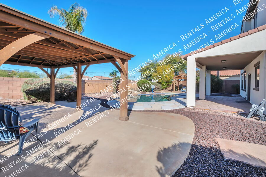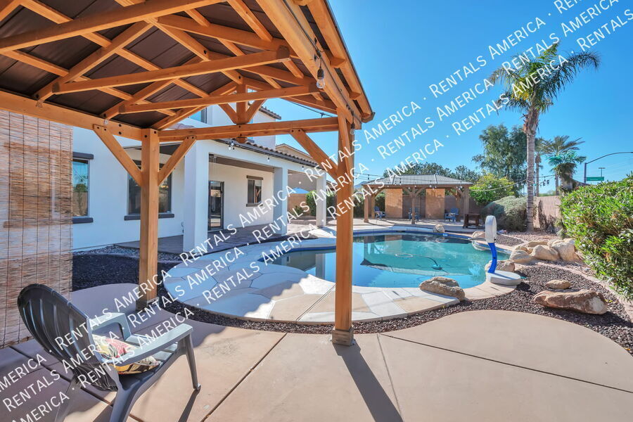 Beautiful Home w/ Pool, Gorgeous Yards, Great Room, Loft & Den Offers Paradise in Gilbert! This home has 3 Bedrooms, 3 Baths, Custom Kitchen w/ Gas Stove, Pantry, Granite Counters, Large Island w/ Breakfast Bar; Spacious Living Room, Dining Room, Arcadia Doors to Covered Patio, Finished Side Yards, Waterfall Pool & Mountain View! Double Door Den is Downstairs. All Bedrooms & Laundry Room Are Upstairs in Split Floor Plan. Master Features Mirrored Walk-In Closet, Dual Sinks, Sep. Shower & Tub, Private Toilet Rm. Loft has Large Storage Closet; Laundry Room Has Yards of Counter Space & Cabinets. 2 Car Garage, Double Gate. Seville Membership Available for purchase: Fitness Ctr, Sports, Water Park & Pools! One Time Admin Fee: $300, Pet Deposit: $300/pet (if applicable), Service Fee: 2%. $39/month Resident Benefits Package, Helping Heroes Discount Available! Cats Allowed Ceramic Tile Community Pool Disposal Dogs Allowed Dryer Garage Hardwood Pets Allowed Views Washer