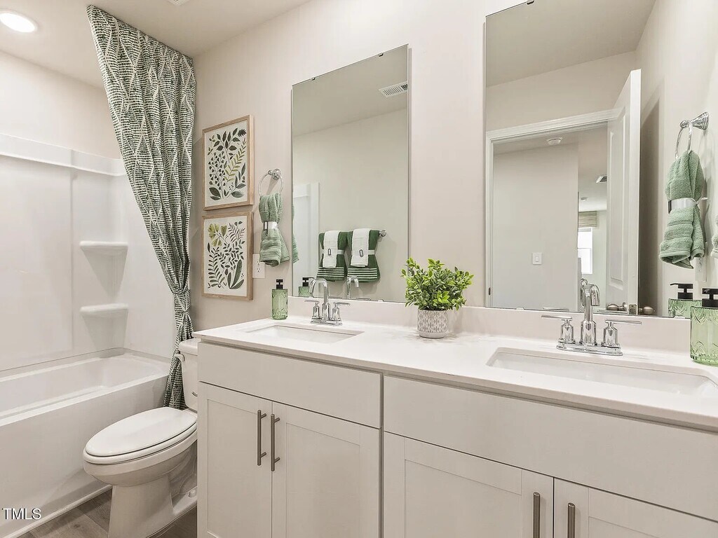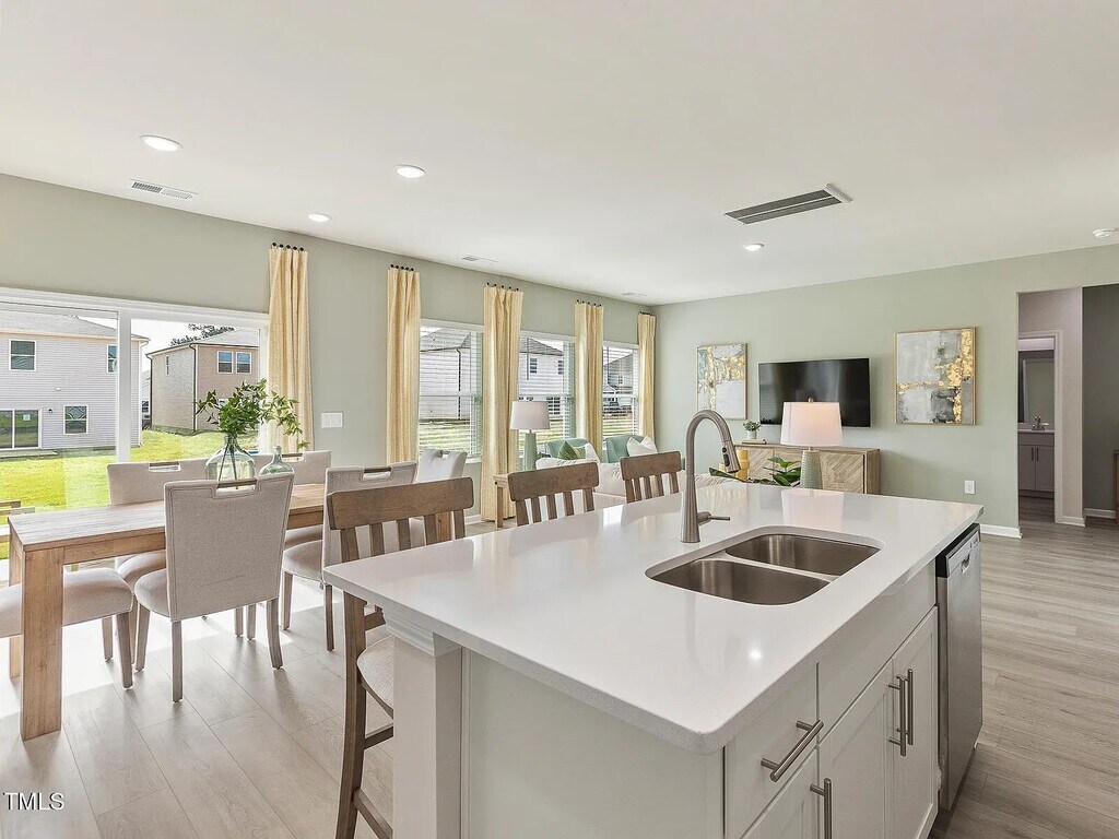 Close to Downtown Angier, this perfect location means ample access to shopping, dining and more while offering easy commutes to the rest of the Triangle. Thoughtfully designed with modern living and comfort in mind, this floorplan boasts exceptional versatility. Guests can enjoy the comfort of a first-floor guest suite, while the open concept living space makes for the perfect place to entertain. Enjoy weeknight meals cooked on a new gas range, or grab a quick bite to eat from the spacious walk-in pantry. A first-floor flex space makes for an unbeatable home office, while upstairs, a massive loft gives everyone a place to relax. The expansive primary suite serves as a serene retreat at the end of each day with luxurious appointments throughout, like a walk-in tiled shower. Nestled in the heart of Angier, River Glen perfectly blends energy-efficient construction with small-town charm. Homeowners will enjoy a playground and walking trails, while direct access toNC-55 means easy commutes to the rest of the Triangle. Plus, this Energy Star Certified home comes move-in ready with a washer, dryer fridge and blinds all included to help make move-in day a breeze!