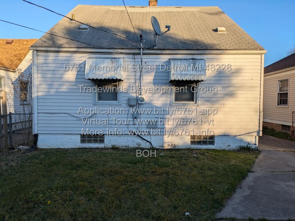 NEW LVP FLOORING | HARDWOOD FLOORS | GLASS SHOWER DOORS | BUILT-IN SHELVES | FORMAL DINING | 48228 All for only $1,200/month in 48228 **CHARMING BRICK BUNGALOW IN HERMAN GARDENS** Welcome to 6761 Memorial, Detroit, MI 48228 - a 3-bedroom, 1-bathroom brick bungalow in Detroit's Herman Gardens neighborhood. This 1,060 sqft home features new LVP flooring, beautiful hardwood floors in the primary bedroom, updated bathroom with stand up shower, built-in bookshelves, and covered patio. **KEY FEATURES & UPDATES** - Move-in ready and available now - 1,060 sqft of comfortable living space - Brand new LVP flooring throughout main floor living areas and bedrooms - Fresh professional paint throughout - Spacious living room with new flooring - Formal dining room perfect for entertaining - Updated eat-in kitchen with ceramic tile back splash - Full bathroom with stand-up shower featuring glass shower doors - 2 main floor bedrooms with new LVP flooring - Large upstairs primary bedroom with beautiful hardwood floors - Built-in bookshelves and generous closet space - Full basement with laundry hookups - Detached 1-car garage with covered patio - Partially fenced yard **CONVENIENT LOCATION - HERMAN GARDENS 48228** - Located on Memorial between Joy Road and Tireman in Detroit 48228 - Easy access to Southfield Freeway and major roadways - Meijer, Kroger, and shopping along Joy Road and Tireman corridors - DMC Sinai-Grace Hospital nearby - Detroit Public Schools Community District - Nearby schools include schools on Tireman Avenue - Detroit/NFL Boys & Girls Club Youth Education Town in area - Stoepel Park, Green Playground, and Doan Playground nearby - DDOT transit access **RENTAL TERMS & MOVE-IN COSTS** - Rent: $1,200 -Security Deposit: $1,800 (1.5x rent) - Application Fee: $50 per adult (18+) - Admin Fee: $100 1 X time flat fee - Available: Now Section 8 and Housing Choice Vouchers Welcome! **TENANT QUALIFICATIONS** - Gross income must be 3x the rent ($3,600/month) - Minimum $3,000 to cover first month + security deposit - Positive rental history with consistent on-time payments - Application documentation includes recent bank statements and current rental ledger **UTILITIES & APPLIANCES** - Utilities: Tenant-paid, giving you full control over usage and providers - Tenant establishes water service directly with provider at move-in - Appliances: None included, allowing flexibility for your preferences **PET POLICY** - Small pets may be considered on a case-by-case basis (inquire w/application) Professionally managed property with great, responsive landlord and property owner committed to tenant satisfaction. Schedule your showing today! Equal Housing Opportunity