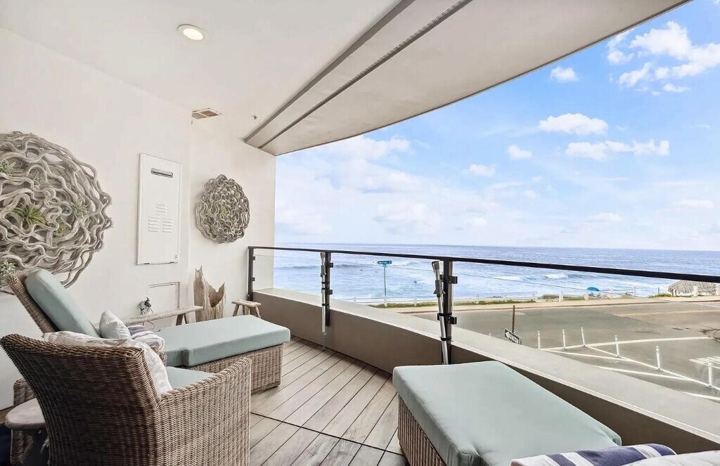 Bedrooms & bathroomsBedrooms: 1Bathrooms: 2Full bathrooms: 11/2 bathrooms: 1HeatingForced Air UnitCoolingCentral Forced AirAppliancesIncluded: Dishwasher, Disposal, Garage Door Opener, Refrigerator, Freezer, Range/Stove Hood, Gas CookingLaundry: Other/RemarksInterior areaTotal structure area: 797Total interior livable area: 797 sqftPropertyParkingTotal spaces: 2Parking features: Attached, Tandem, UndergroundGarage spaces: 2FeaturesLevels: 1 StoryStories: 3Fencing: Full,Gate This oceanfront gem offers unparalleled coastal living where vibrant sunsets and ever-changing swells create an unmatched coastal experience. Watch surfers at Windansea Beach from your deck chair, enjoying the best surf check around. This lock-and-go retreat blends effortless elegance with a remodelled open-plan kitchen and living room, a serene bedroom, and a spa-like primary bath featuring Waterworks fixtures, marble floors, and Thassos tile. Ample storage, including a large two-car g...