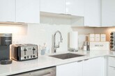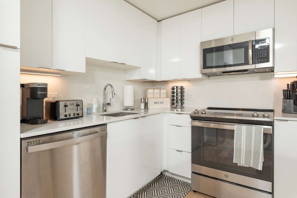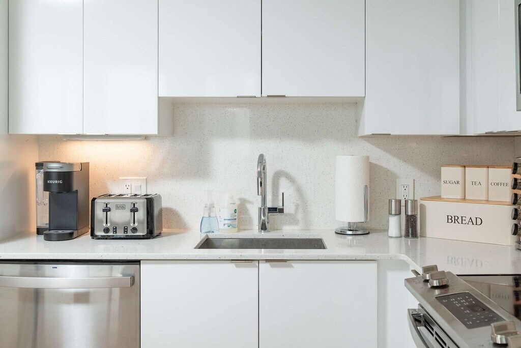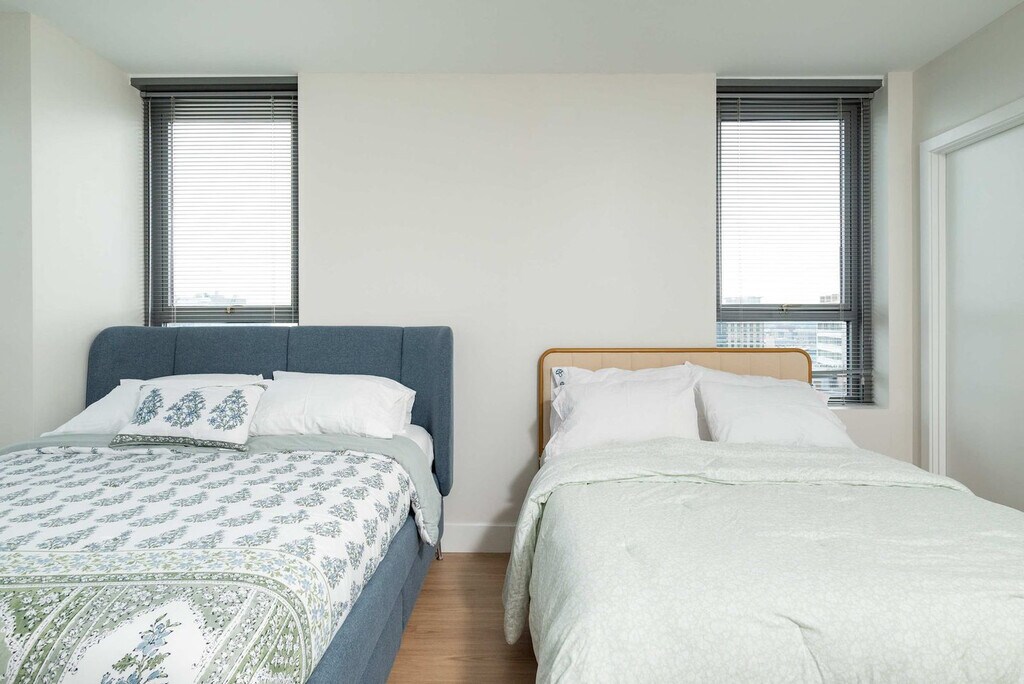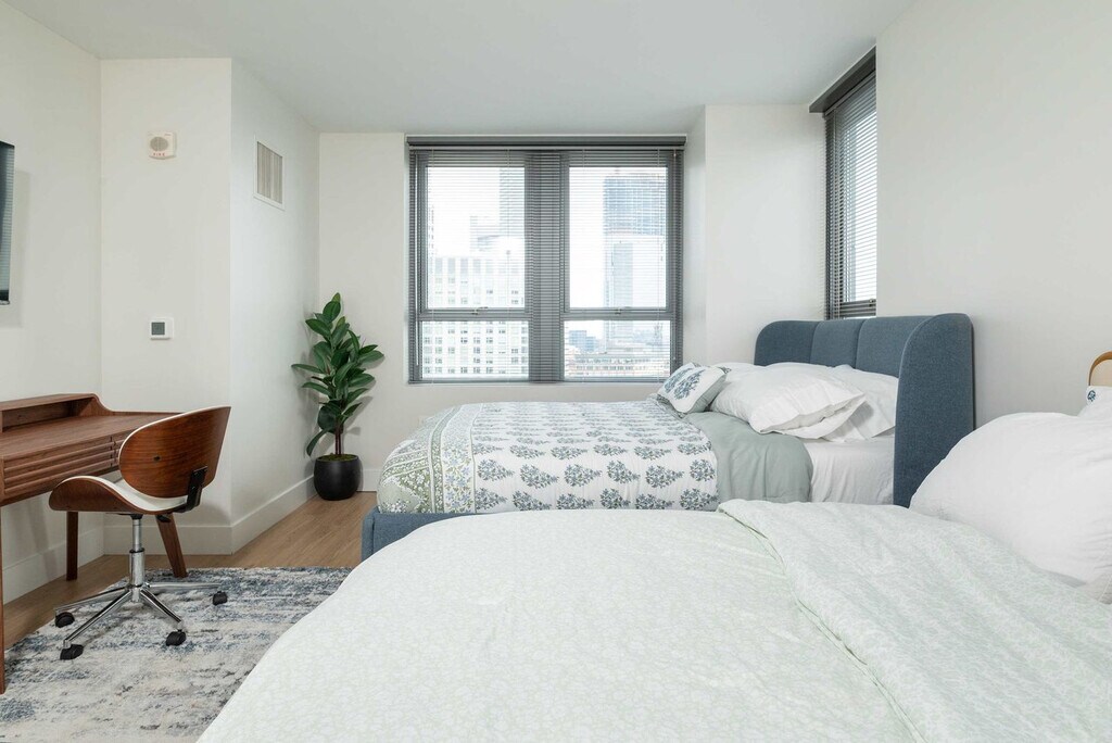 Feel at home in this luxurious 2-bedroom, 2-bathroom penthouse in Boston's Downtown Chinatown, offering breathtaking views of the Boston skyline and Back Bay. The building has two elevators. This modern and unique apartment features lightning-fast Wi-Fi, a full kitchen, and a washer and dryer. The living room includes a large couch that fits 3 adults, two living room chairs, and a 60-inch TV with Roku and Netflix. The fully stocked kitchen has a dishwasher and coffee machine. There is also a full-size gym available 24/7. You're within a 5-10 minute walk to Downtown Boston, Back Bay, Beacon Hill, and the Seaport District. Logan International Airport, Longwood Medical Center & MGH, and Boston Medical Center & Tufts Medical Center are also nearby. Quiet times are from 9pm to 9am. Smoking or partying violation will result in a $1000 fine. All guests over 18 are required to submit a copy of their IDs. Lost key fob will result in a $100 fine. If you need a folding bed, you need to let us know at least 1 day (24 hours) prior to your arrival. Each guest has 1-2 hours to check the apartment and send a message in case of anything missing/unclean so we can verify and react to ensure a smooth check-in process and comfortable stay. Any requests after this time-frame will be postponed until the next day. All food/beverage leftovers must be trashed outside the apartment. Includes a dedicated workspace with a desk and chair. [SI]
