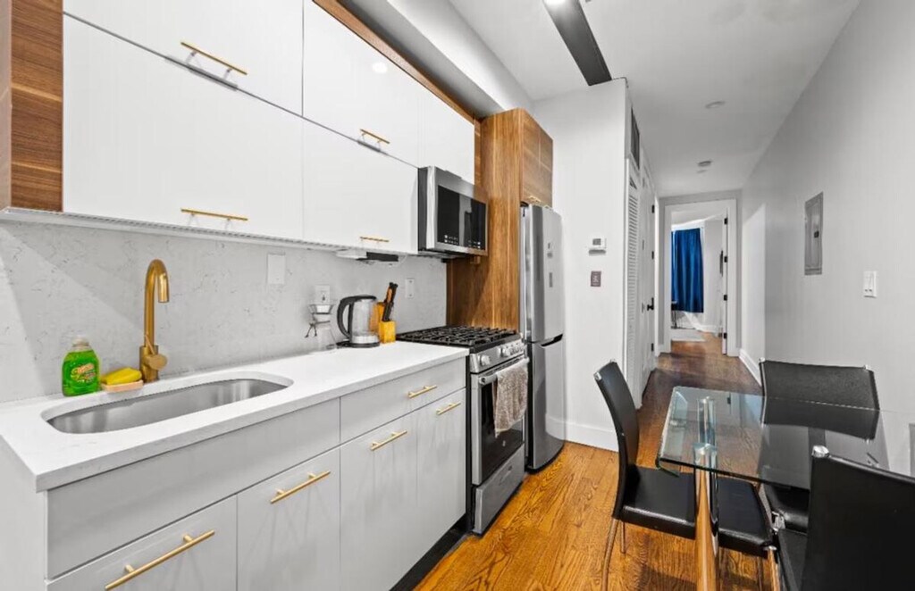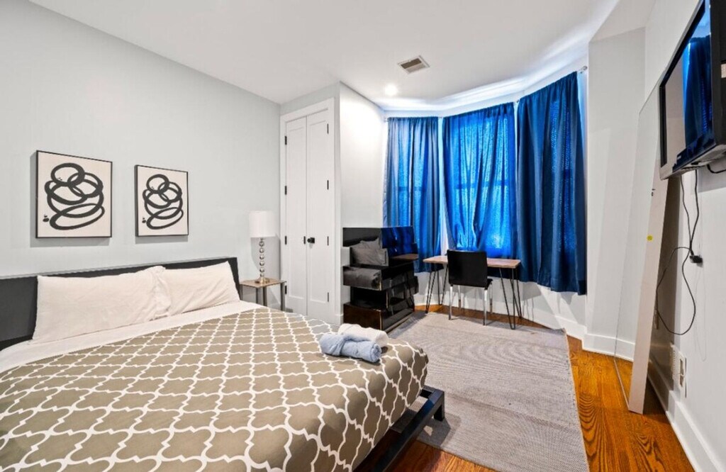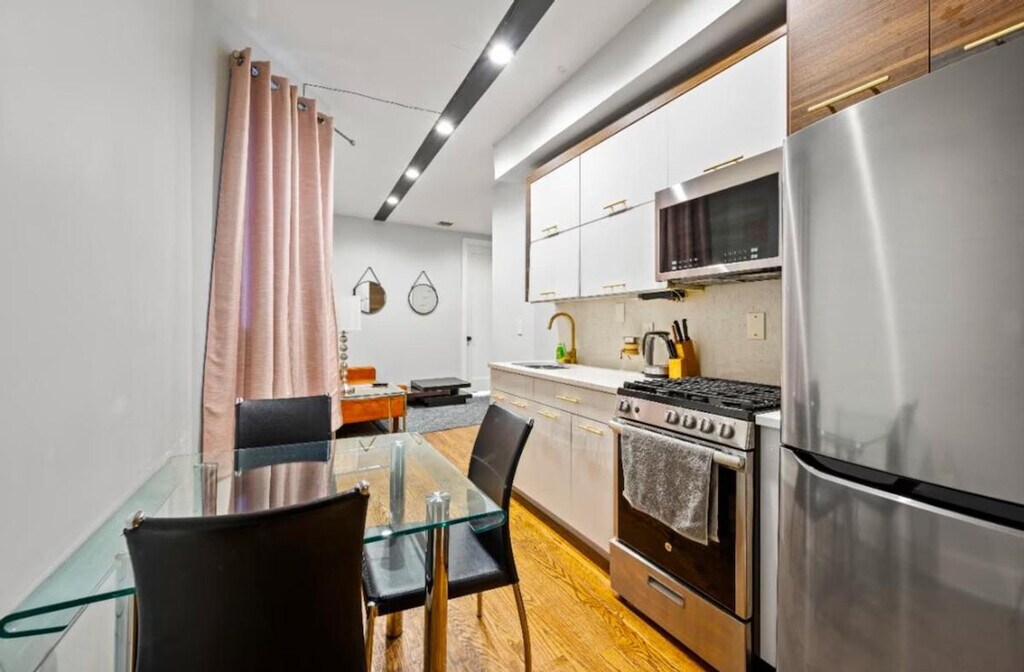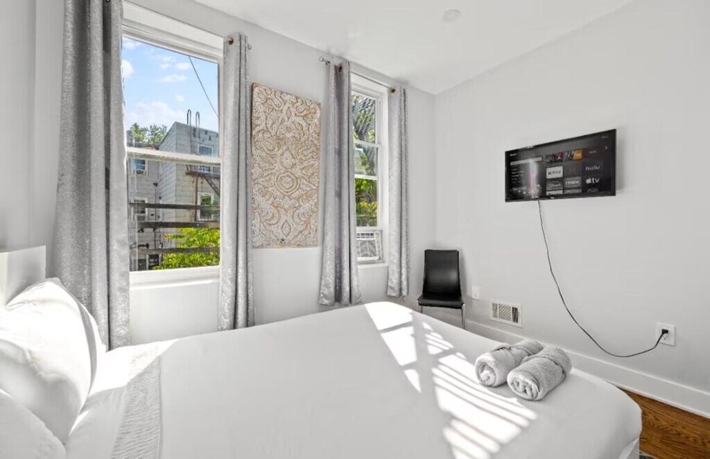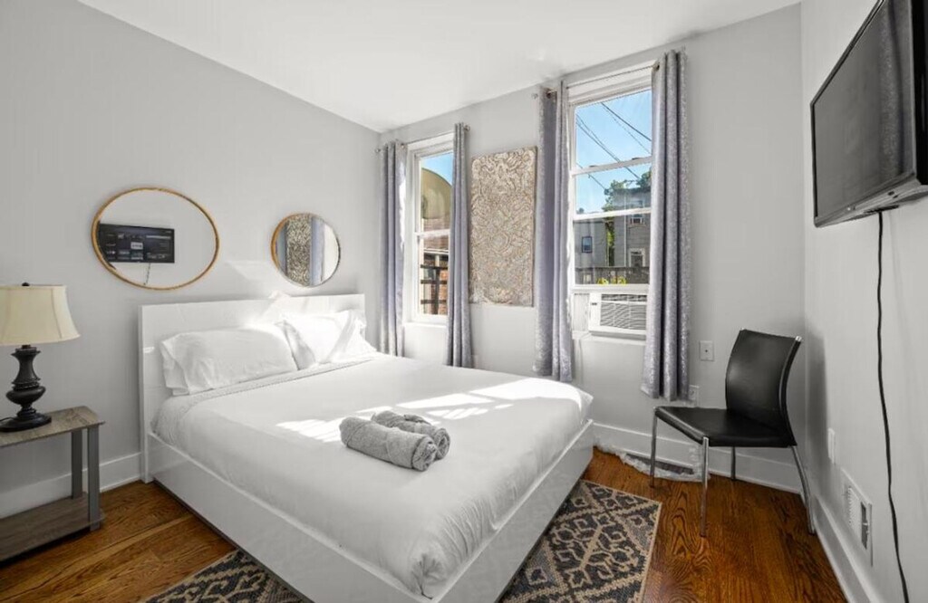 Feel at home in this charming 2-bedroom, 1-bath apartment, located on the second floor of a walk-up building. The apartment features secure and convenient keypad entry. Experience the ultimate urban retreat in this stylish apartment. Recently renovated, this modern haven blends contemporary design with homey comforts. Both bedrooms provide a tranquil escape, each featuring ample storage with chic dressers and a closet, and flat-screen TVs complete with Netflix for cozy evenings in. Stay seamlessly connected with high-speed Wi-Fi that extends throughout the space. Enjoy year-round comfort with the efficient central air conditioning and heating system. Parking is unavailable, however, the convenience of the nearby Path train offers easy and efficient access to Manhattan and other popular destinations. Conveniently located just moments from the Path train, you have a direct link to Manhattan. The close proximity to the Path train ensures easy access to Manhattan’s countless attractions. The in-unit laundry facilities are currently not operational.