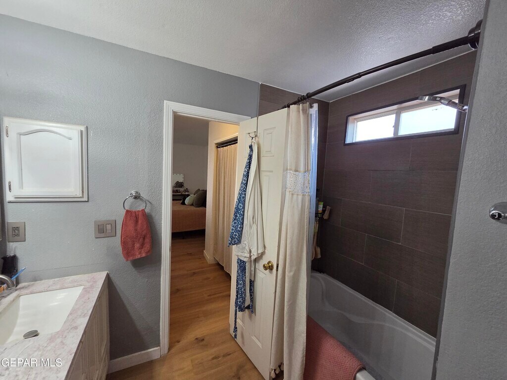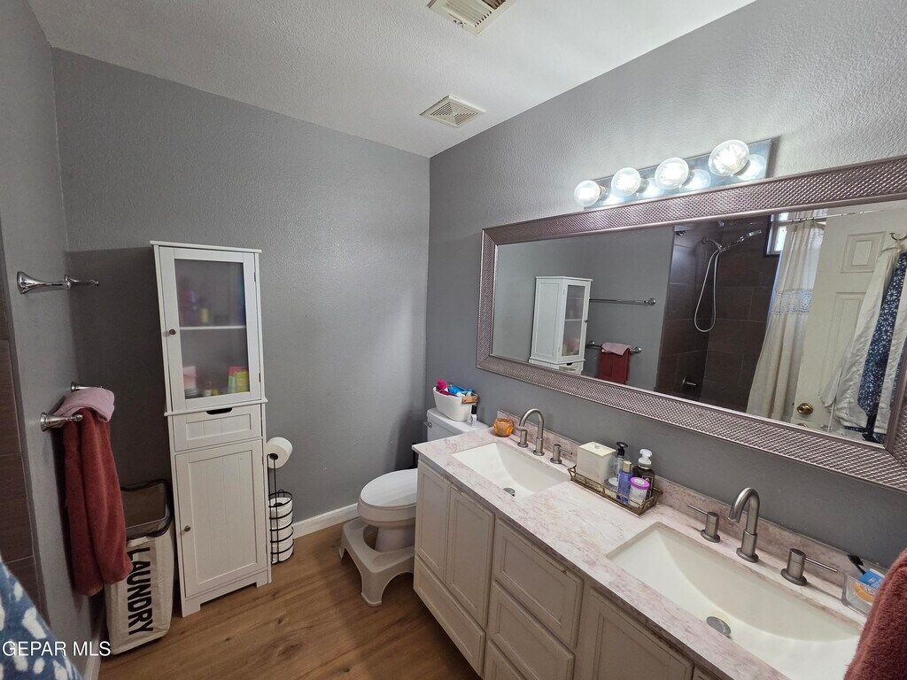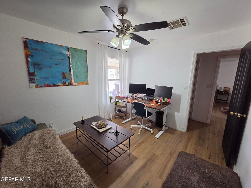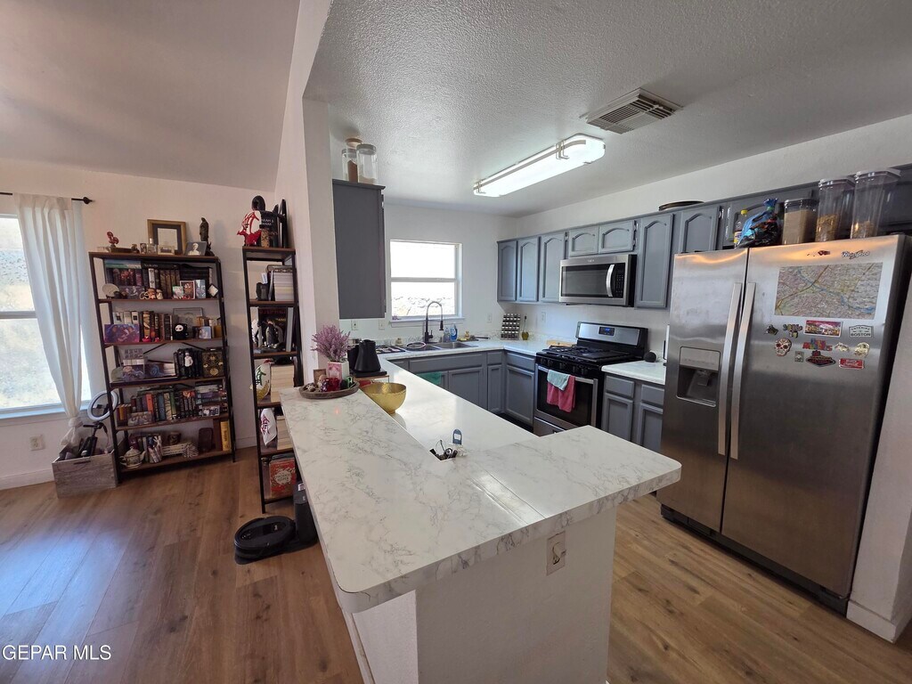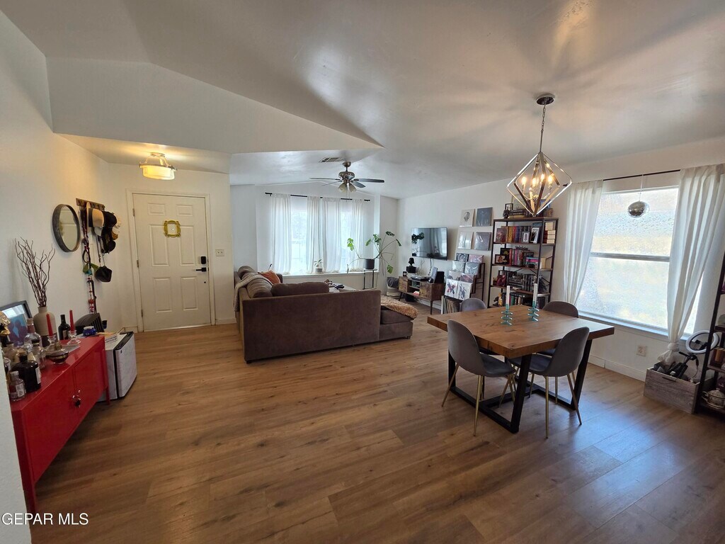 Move-In Ready! Single-level home located in the desirable River Park West subdivision. Featuring an open-concept layout and 1,353 sq. ft. of living space,this home is designed for both relaxation and entertaining. The heart of the home is a cozy kitchen fully equipped with a convection oven,microwave,dishwasher,and side-by-side refrigerator.The primary suite offers a private retreat with double closets and a luxury vanity. Enjoy the El Paso sunshine on your covered patio within a fully walled backyard,perfect for weekend BBQs.Key Features: 3 BR / 2 BA,Refrigerated Air,Newly Updated Tile & Carpet.Convenience: Located just off Artcraft and Upper Valley with quick access to shopping and dining.