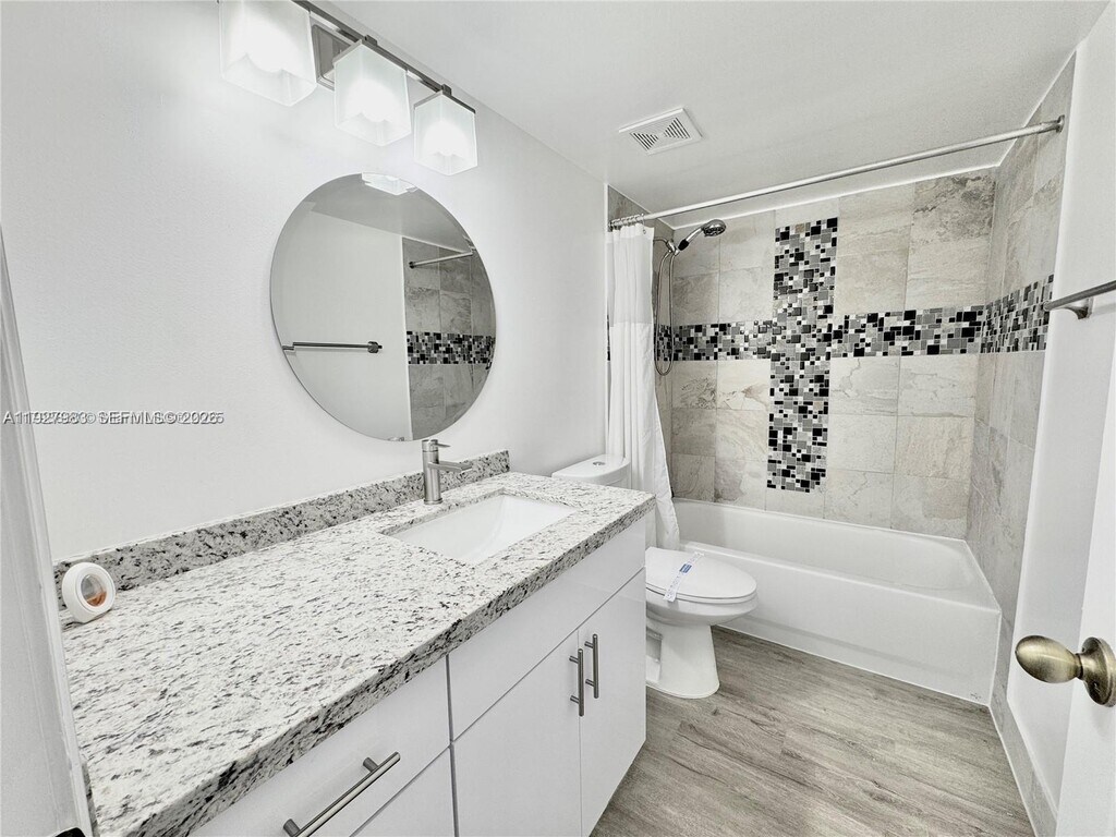 ONE CAR GARAGE INCLUDED - Beautiful Remodeled 1065 sqft 2 bedrooms 2 baths Corner unit Condo in the heart of Pembroke Pines. Property features: Beautiful open Concept Brand Kitchen with New Wood Cabinets, Granite Counter Tops with water fall concept, New Backsplash and New stainless-steel appliances, Spacious bedrooms w/ walk-in closets, beautiful bathrooms with modern Vanities, New Vinyl Floors & Baseboards throughout all Place. Open balcony to enjoy & relax in your free time, Washer & Dryer inside unit. Condo has been recently painted, ********* A MUST SEE************** Located just steps to Pembroke Pines Mall and Pines Blvd., easy access to major expressways, restaurants, supermarkets and great school district. Send your best offer now! MLS # A11927983
