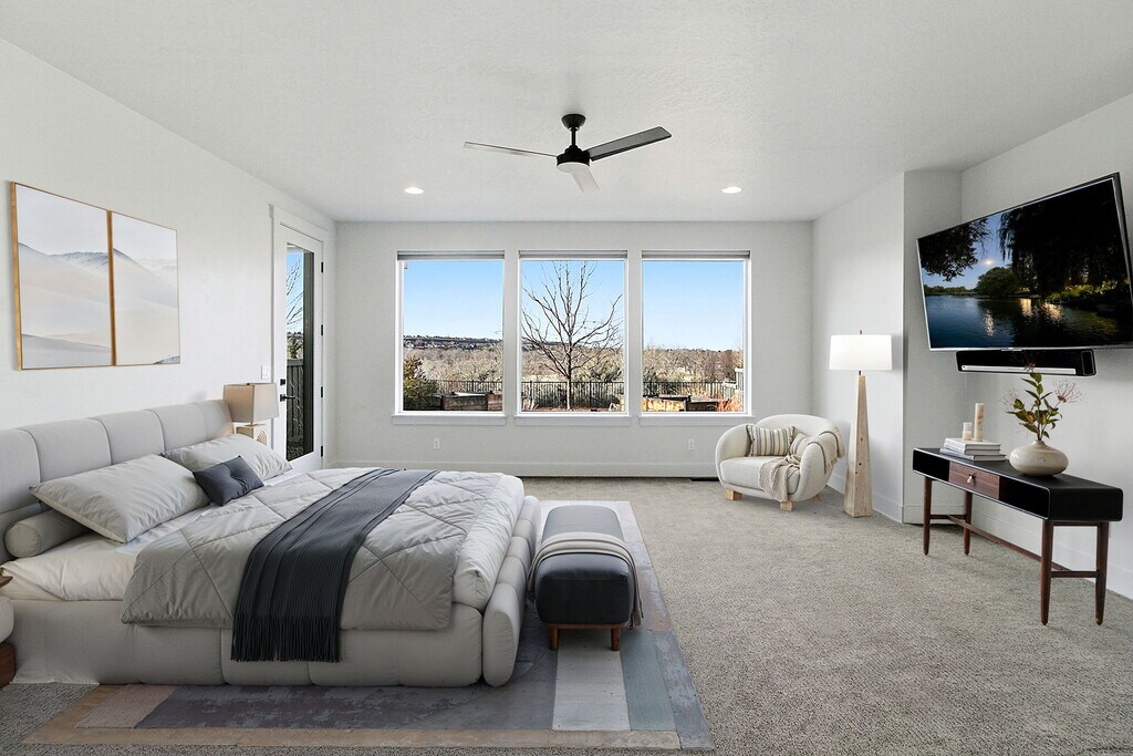 Rare Boise River Rim Home Fully Furnished with Unmatched Views Don't miss this rare opportunity to live on the rim of the Boise River. This fully furnished home offers breathtaking, unobstructed views of the Boise River, Nature Preserve, and foothills from nearly every room and every floor. Just beyond the backyard fence, you'll find direct access to the Boise Greenbelt and Boise River, placing world-class outdoor recreation literally steps from your door. Designed to impress, the spacious great room features soaring 10' ceilings and a dramatic wall of windows that floods the home with natural light and showcases the tranquil river basin below. Step onto the open balcony with upgraded cable railing and take in unforgettable sunsets over the foothills. The private primary suite is a true retreat, complete with a sitting area or flexible bonus space and stunning panoramic views of the river and surrounding landscape. Thoughtfully designed, low-maintenance xeriscape landscaping and raised redwood garden boxes enhance the outdoor living experience without added upkeep. This home is loaded with premium upgrades, including enhanced lighting, remote-controlled outdoor solar shades on both east and west-facing windows across all three levels, remote-controlled insulated interior blinds, and advanced HVAC improvements featuring hospital-grade air quality, a GAPA filter air purifier, GPA ion generator, humidity control, and dual comfort zone thermostats. Ideal for corporate rentals or travel nurses, the property is located less than 5 miles from Micron, approximately 8 miles from Boise Airport, and offers convenient access to major hospitals and downtown Boise. Outdoor enthusiasts will love being minutes from Lucky Peak State Park, with hiking, biking, paddleboarding, and river access right outside the backyard. With close proximity to both the interstate and downtown Boise, the opportunities await! Contact today for more information and to schedule a private tour! 6 Month Minimum Lease. Tenant to put all utilities in their name. No pets or smoking allowed. Minimal landscaping maintenance required by Tenant.