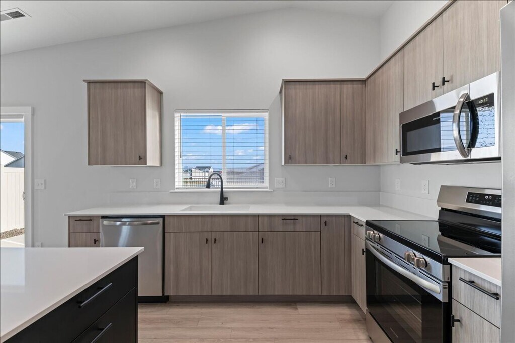 Be the first to live in this beautiful brand-new home in South Meridian. Located on a corner lot with a fully fenced back yard. This single-story home features a split floor plan with 4 bedrooms and 2 bathrooms and 1860 sq. ft. of living. Stay connected with family and friends in the open concept kitchen, that leads to the vaulted great room and dining room. Attached 2 car garage. Community pool and park. The Tenant is responsible for all utilities and lawncare. Available for immediate occupancy for $2300 a month. Please contact Tillie B. . Windermere Property Management. Equal Housing Opportunity.