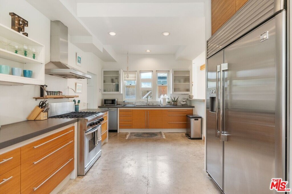 Welcome to 678 Broadway, a fully-furnished move-in ready architectural residence in sought-after Venice Beach. This 4-bedroom (+ bonus room), 3-bathroom home sits discreetly behind gates and tall hedges, offering a calm, private retreat at the center of Venice. Thoughtfully designed for both functional daily living and entertaining, the home balances clean lines, natural light, and inviting outdoor spaces.Once the personal residence of a respected local designer, the home is filled with volume and light. Vaulted ceilings, ample windows, and skylights create an airy atmosphere throughout, while carefully chosen natural materials bring warmth and durability.The primary suite feels quietly elevatedtree-lined, peaceful, and spa-likewhile nearly every room enjoys its own patio or balcony. The chef's kitchen features high-end stainless steel appliances, generous storage, custom cabinetry, and a built-in dining nook that naturally becomes the heart of the room.A generously sized first-floor bonus room (not pictured) offers flexibility for a home office, studio, media room, or playroom. Living spaces open easily to the outdoors, where a private backyard unfolds as a series of inviting outdoor areas with lush landscaping, a custom treehouse, grassy lawn, and an outdoor fireplace.Additional amenities include a rooftop deck and gated carport parking. Just moments from Abbott Kinney, Rose Avenue, and the beach. MLS# 26651395