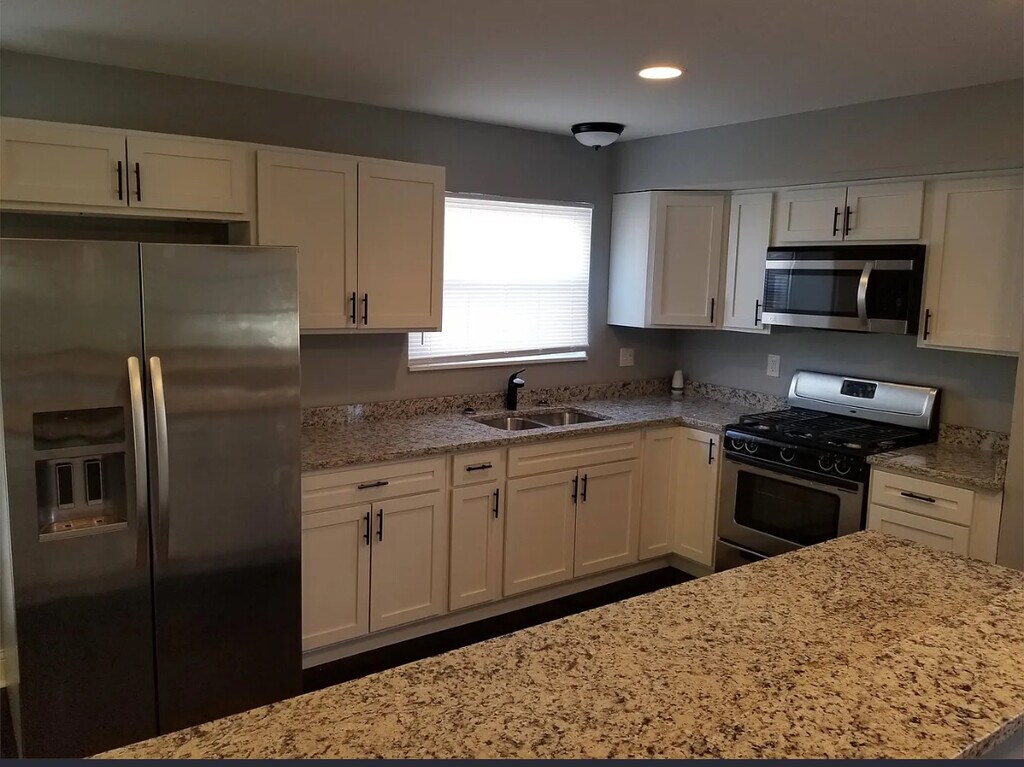 Home with 3 beds and 2 full baths, all one level. New siding, new windows, new doors, new roof, new laminate flooring, new appliances, new cabinets, new vanities, new granite in the kitchen, new toilets, new bathrooms, new driveway, new windows, light fixtures, etc. Perfect one level home, long driveway and nice size yard