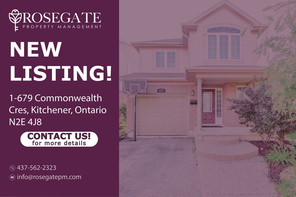 Spacious 3-Bedroom + Den, 1.5-Bath Home in Kitchener – 1,900 Sq Ft Welcome to 1-679 Commonwealth Crescent, a bright and spacious 3-bedroom + den, 1.5-bathroom home offering 1,900 sq ft of comfortable living space in a family-friendly Kitchener neighborhood. Perfect for families, professionals, or anyone seeking extra space, this home combines modern functionality with a welcoming atmosphere.The main floor features a large living area, a well-appointed kitchen with ample cabinetry, and a convenient half-bathroom for guests. Upstairs, you’ll find three generously sized bedrooms and a full bathroom, along with a versatile den that can be used as a home office, study, or playroom. The layout is ideal for comfortable everyday living and entertaining.Situated close to schools, parks, shopping, and transit, this home offers both convenience and a peaceful residential setting. Schedule a private viewing today to experience all that this spacious Kitchener home has to offer.