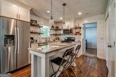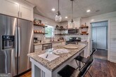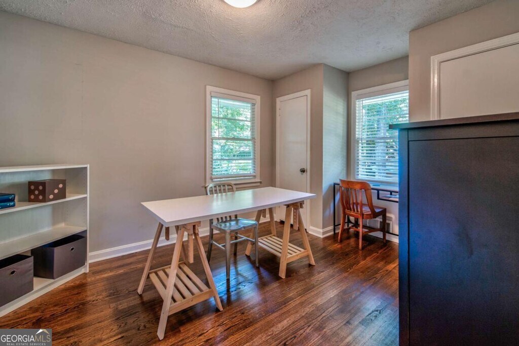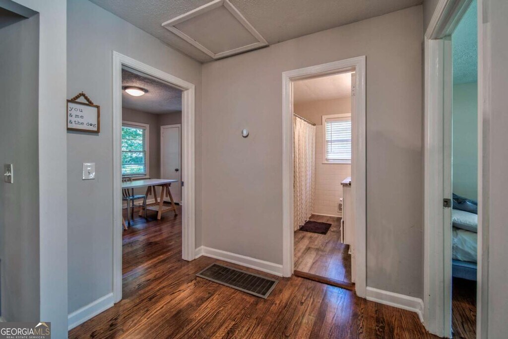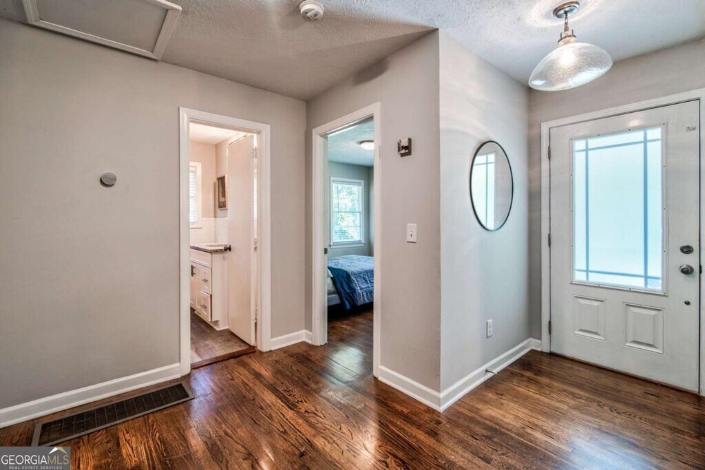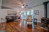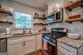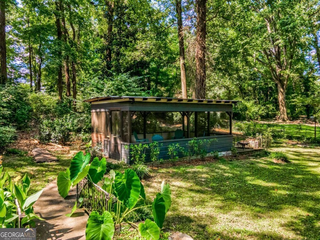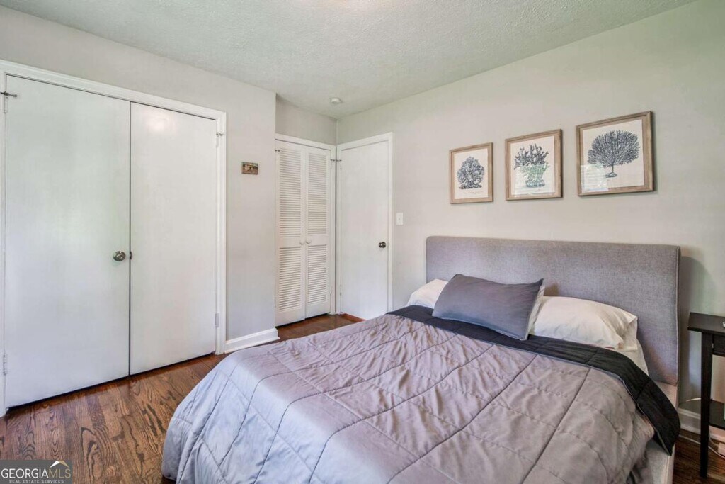 Fully renovated, four-sided brick mid-century ranch is situated on nearly 3/4 of an acre with a fenced yard, located in a quiet, well-established cul-de-sac neighborhood. Thoughtfully updated in 2020, this 3-bedroom, 2-bath home combines timeless character with modern conveniences. The single-level design offers minimal steps and an open, inviting floor plan. The primary suite features an ensuite bathroom, custom built-in closets, and ample natural light. The updated eat-in kitchen includes granite countertops and custom shelving, flowing seamlessly into the family room, where a wood-burning stove with a stone hearth provides a cozy focal point. Designer fixtures with dimmable lighting and custom finishes enhance the home's sophisticated appeal. French doors open to a spacious private deck and garden area, ideal for relaxation or entertaining. The backyard includes a large detached entertaining shed with a built-in brick BBQ, adding versatile outdoor living space. Additional highlights include a newer roof, updated systems, and modern electrical and plumbing. Available to lease fully furnished. Conveniently located just minutes from I-20, I-285, I-75, and Truist Park, this home offers easy access to the Silver Comet Trail, fitness centers, and a variety of grocery stores including Aldi, Lidl, Publix, and Kroger. Local amenities such as CVS, a hardware store, and emergency services are nearby.