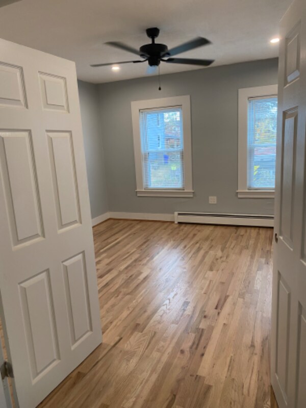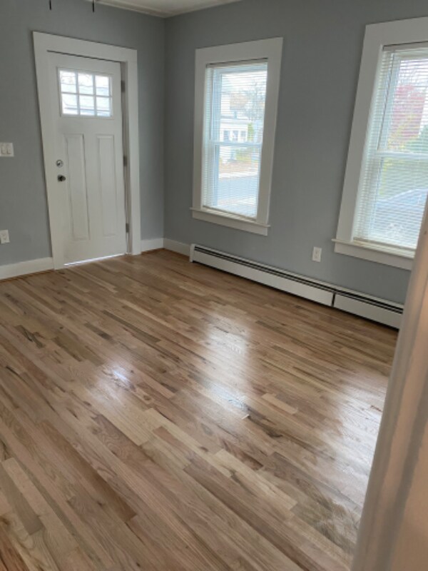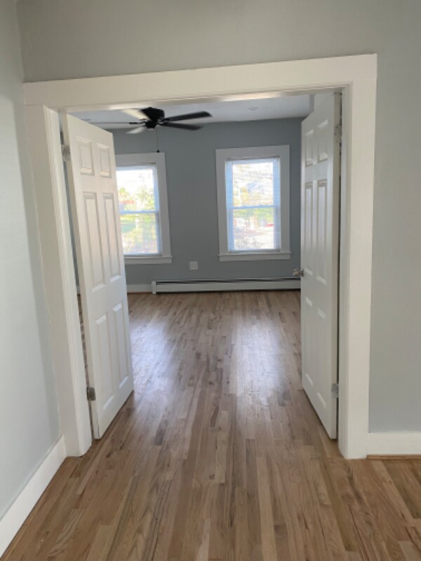 Property Id: 1331832 Large 2 bedroom 1st floor apartment. Brand new hardwood floors and paint throughout. Updated appliances. Completely remodeled bathroom/kitchen complete with tile backsplash,undercabinet lighting,coffee/dry bar. Recessed lighting/ceiling fans throughout. Newer windows/exterior doors. Small fenced in yard. Tenant pays gas/electric.Washer/dryer hook ups in basement as well as storage. 2 cars off street parking. First,last and security due at move in date.