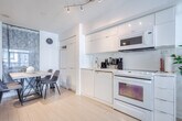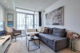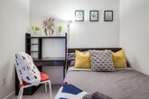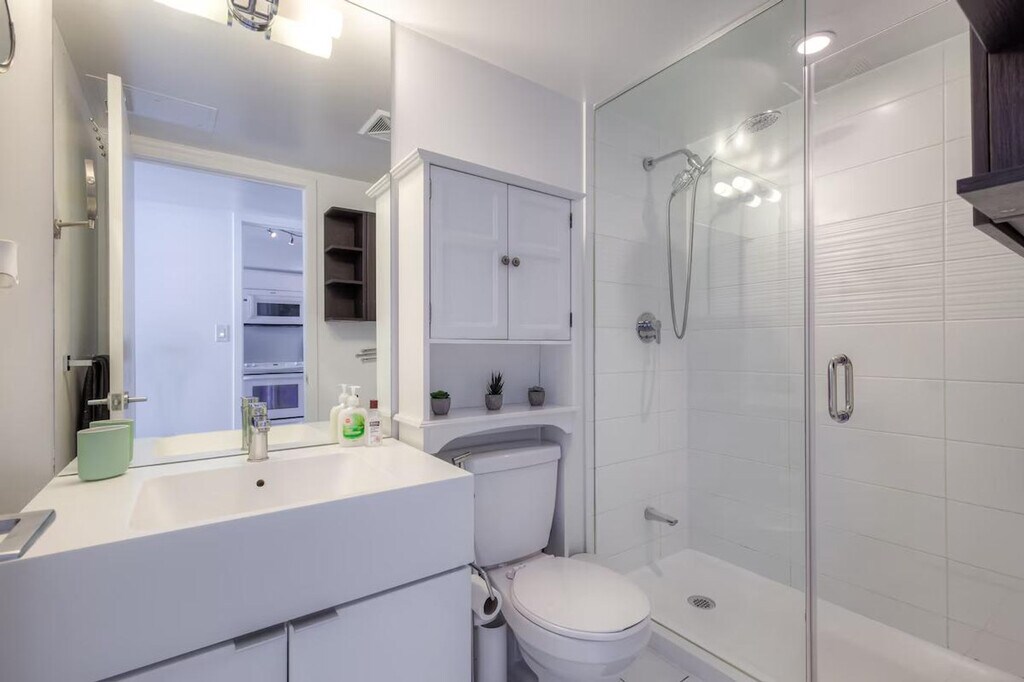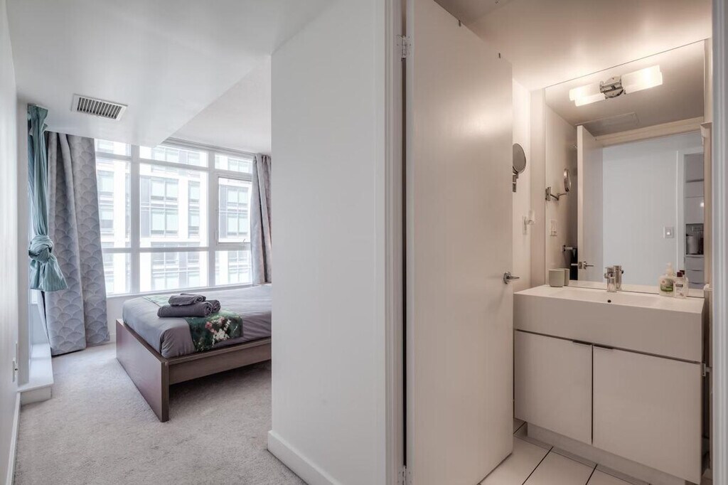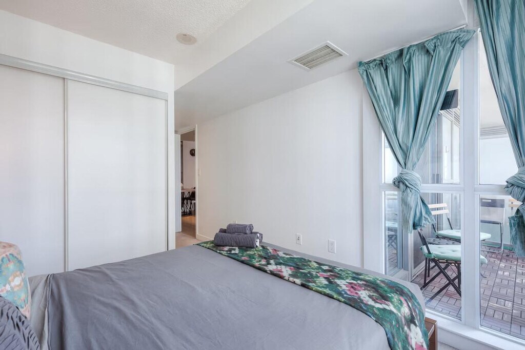 Feel right at home in this comfortable suite with 2 bedrooms and a den, featuring 2 full bathrooms. This apartment has everything you need, including a fully functional kitchen with tea, coffee, a kettle, coffeemaker, and toaster. A washer and dryer with supplies are also available. The 2 bathrooms include towels, shampoo, conditioner, body wash, a hair dryer, and other toiletries. Paid underground parking with in/out privileges is available upon request for $20 per night, or $10 per night for bookings of at least 15 nights. A travel crib (for babies 0-18 months) and bed rails are available for $10 per item per night. Pets are allowed with a fee of $20 per pet per night; please confirm with us prior to booking. Enjoy easy access to the TTC, Union Station, Lake Shore, and Gardiner Expressway. This apartment is steps away from the CN Tower, Rogers Centre, Union Metro Station, Financial District, bars, restaurants, and Sobeys Grocery Store. Bishop airport is also nearby. Every guest must provide their personal information prior to check-in, including the full names of every guest staying in the apartment. Guests must be 25 or over in order to check in, although for reservations of 7 nights or more, check-in is possible from the age of 18. Guests whose names or ID do not match the provided information are not allowed into the building. [SI]