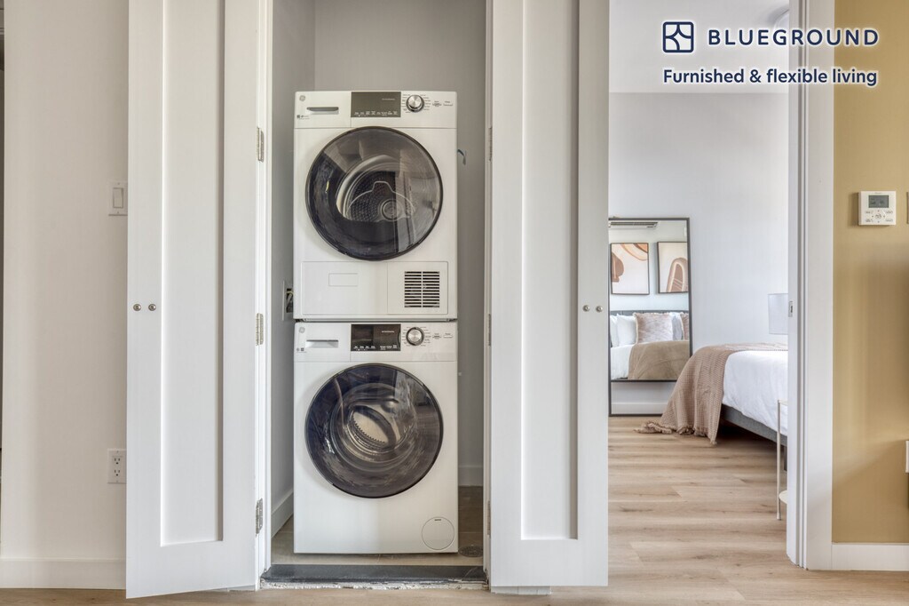 Discover the best of New York, with this two bedroom apartment in Vinegar Hill with balcony views over the city. It’ll be easy to simply show up and start living in this airy furnished apartment with its fully equipped kitchen, comfortable living room, and our dedicated, on-the-ground support. (ID #NYC960) The advertised rate of $9,080/month is the lowest available price, based on a 3 month(s) and 27 day(s) stay with a move-in date of September 30, 2029. If you’re looking for a 1-year stay, the rate is $9,440/month. Rates vary depending on the duration of stay, season, and other parameters. For exact pricing and additional pricing components, please visit our website and enter your desired move-in and move-out dates. The rate is applicable when billed upfront; it can be higher if billed in multiple payments. Brokers are welcome to reach out. Were you looking for an unfurnished lease? Try Blueground instead and upgrade from unfurnished to furnished living: - Furnished at rates comparable to unfurnished - No setup or furniture costs - save thousands - Move-in ready - save time, just bring your suitcase Designed with you in mind As with any Blueground apartment, you’ll find a thoughtfully designed space complete with beautiful furniture and a fully equipped kitchen in this two bedroom property. And, thanks to our superior quality mattresses, fully stocked linens, and towels, you can relax knowing you’ll always feel comfortably at home. When you’re ready for some fun, you can take in the New York vibes or bring the entertainment to you with the premium wireless speaker or smart TV. This apartment also offers in-apartment laundry. Sleeping arrangements Queen Bed, 63in/160cm Queen Bed, 63in/160cm Amenities Building amenities unique to this two bedroom apartment include an on-site: - Dryer - Elevator - Washing machine - Lounge - Pets allowed Arrival and ongoing support The entire apartment is yours to enjoy! Throughout your stay, you’ll have access to our Client Experience team through the Blueground App. You can schedule additional cleanings, submit maintenance requests, and view our neighborhood recommendations with just a few taps. We’ll share all details upon confirmation of your stay. Other things to note Building amenities may have an extra cost. This Blueground apartment has flexible lease options, allowing you to book it for one month, a year, or more. Pets are welcome, though weight limits and breed restrictions apply and may incur fees. Brokes CYOF. We take great pride in ensuring every photo displayed is shot in our own units with our actual furnishings. That said, we regularly refresh our decor and furniture arrangement, which may differ from what’s pictured. Also note - Ongoing construction in close proximity; construction sounds may occasionally be heard [SI]