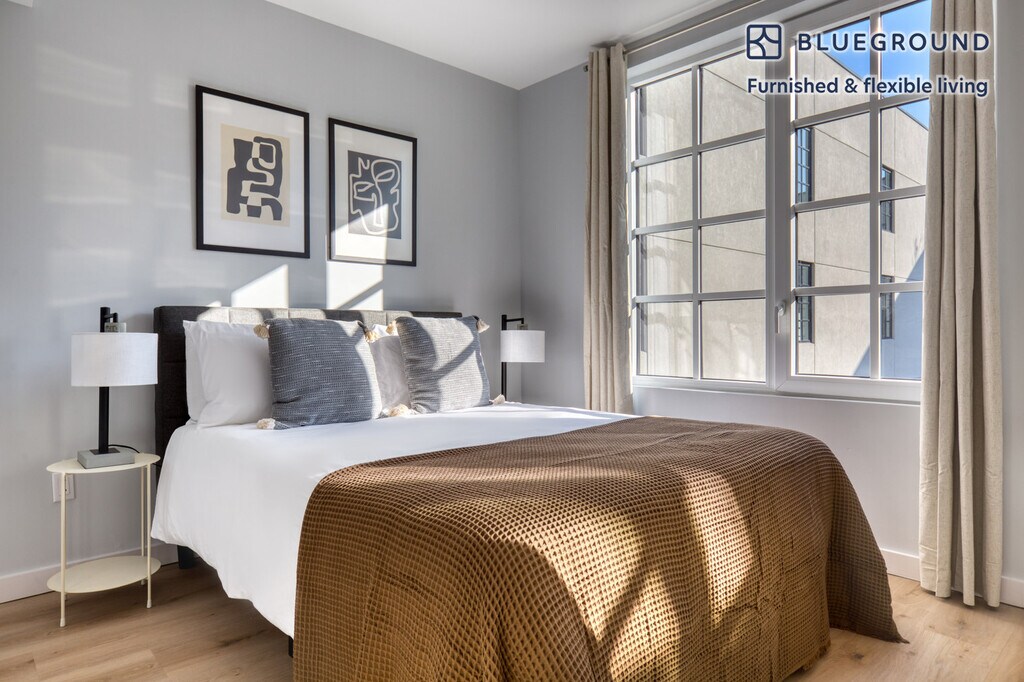 Discover the best of New York, with this two bedroom apartment in Vinegar Hill. It’ll be easy to simply show up and start living in this elegantly furnished apartment with its fully equipped kitchen, stylish living room, and our dedicated, on-the-ground support. (ID #NYC961) The advertised rate of $5,070/month is the lowest available price, based on a 1 month(s) and 29 day(s) stay with a move-in date of February 1, 2026. If you’re looking for a 1-year stay, the rate is $6,530/month. Rates vary depending on the duration of stay, season, and other parameters. For exact pricing and additional pricing components, please visit our website and enter your desired move-in and move-out dates. The rate is applicable when billed upfront; it can be higher if billed in multiple payments. Brokers are welcome to reach out. Were you looking for an unfurnished lease? Try Blueground instead and upgrade from unfurnished to furnished living: - Furnished at rates comparable to unfurnished - No setup or furniture costs - save thousands - Move-in ready - save time, just bring your suitcase Designed with you in mind Thoughtfully designed with bespoke finishes, modern furnishings, and a fully equipped kitchen, you’ll enjoy that “I’m home” feeling with this Blueground apartment. Whether you’re lounging in your sophisticated living room streaming the latest and greatest entertainment on the smart TV or premium wireless speaker, or getting some well-earned rest on the superior quality mattress with luxury linens, you’ll fall in love with everything this Vinegar Hill apartment has to offer. This apartment also offers in-apartment laundry. Sleeping arrangements Queen Bed, 63in/160cm Queen Bed, 63in/160cm Amenities Building amenities unique to this two bedroom apartment include an on-site: - Dryer - Elevator - Washing machine - Lounge - Pets allowed Arrival and ongoing support The entire apartment is yours to enjoy! Throughout your stay, you’ll have access to our Client Experience team through the Blueground App. You can schedule additional cleanings, submit maintenance requests, and view our neighborhood recommendations with just a few taps. We’ll share all details upon confirmation of your stay. Other things to note Building amenities may have an extra cost. This Blueground apartment has flexible lease options, allowing you to book it for one month, a year, or more. Pets are welcome, though weight limits and breed restrictions apply and may incur fees. Brokes CYOF. We take great pride in ensuring every photo displayed is shot in our own units with our actual furnishings. That said, we regularly refresh our decor and furniture arrangement, which may differ from what’s pictured. Also note - Ongoing construction in close proximity; construction sounds may occasionally be heard [SI]