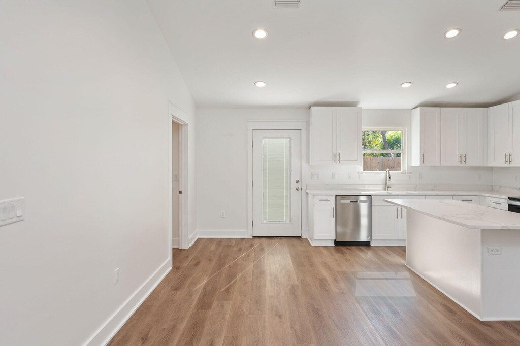 Beautiful and move-in ready! This charming 3-bed, 2-bath home features an open floor plan with vaulted ceilings and LVP flooring throughout the main living areas. The modern kitchen shines with white shaker cabinets, quartz countertops, and stainless steel appliances. The master suite offers tray ceilings and a spacious walk-in closet for added comfort. Step outside to a cozy backyard complete with a fire pit perfect for relaxing evenings or weekend gatherings. Located in the peaceful community of DeFuniak Springs, you'll enjoy a quiet setting while being just 40 miles from the stunning Gulf Coast beaches. Don't miss your chance to make this beautiful home yours today!