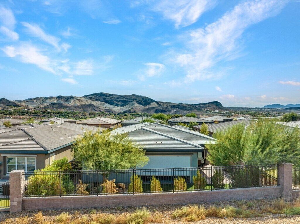 Immaculate 2600 sq. ft. single story 2 bed, 2 bath with modern glass framed office/den right on the GOLF COURSE in stunning Lake Las Vegas! Spacious upgraded home in gated community. INTERIOR: dramatic double door entry, hard wood flooring, elegant custom lighting, power shades on pocket sliding doors in dining & great room, Amazon smart home, alarm wired, in-wall hidden tv cable system in all rooms. KITCHEN: gas stainless steel appliances, double ovens & microwave, Keurig refrigerator, oversized island, MASTER BR/BATH: mounted fireplace, 2-person soaking bath, floor to ceiling custom mirror, rainfall shower, huge walk-in custom closet, walk-thru to laundry with sink, frontload washer/dryer, folding area and cabinets. 2BR: Spacious and bright, walk-in custom closet and MOUNTED 55” Samsung TV INCLUDED. EXTERIOR: Beautiful private courtyard, wrap-around covered patios with Drop Shade, turf lawn, water softener, electric car charger, epoxy garage floor with lots of storage.