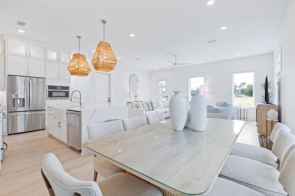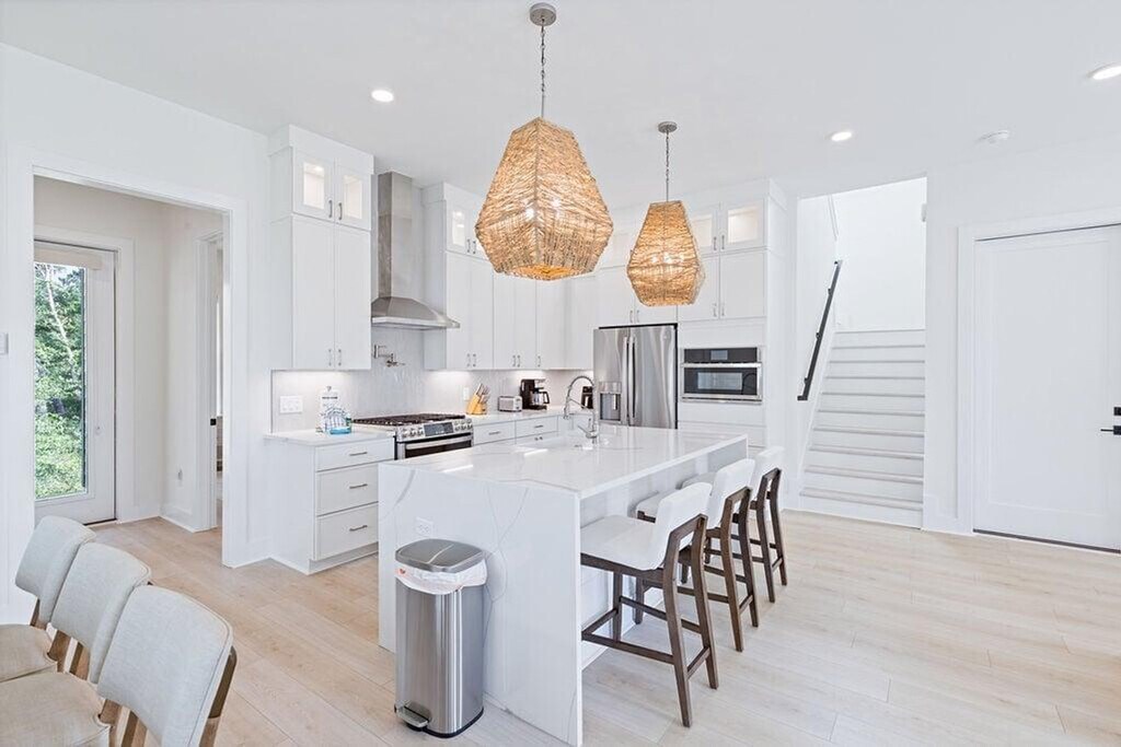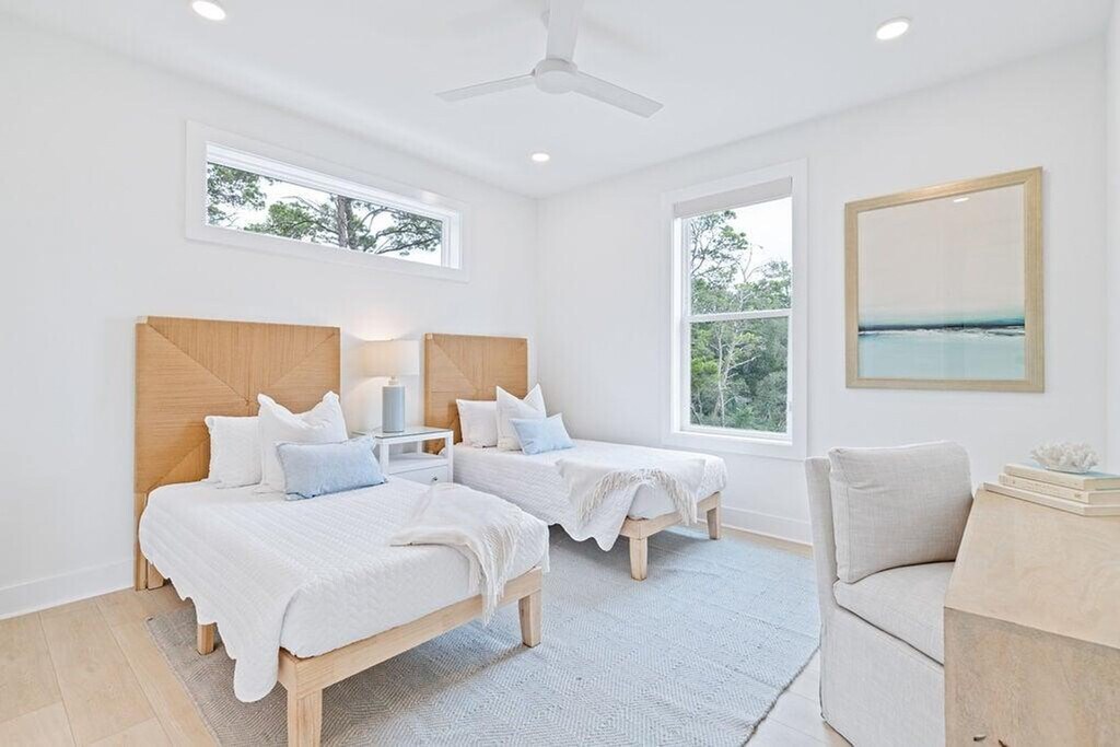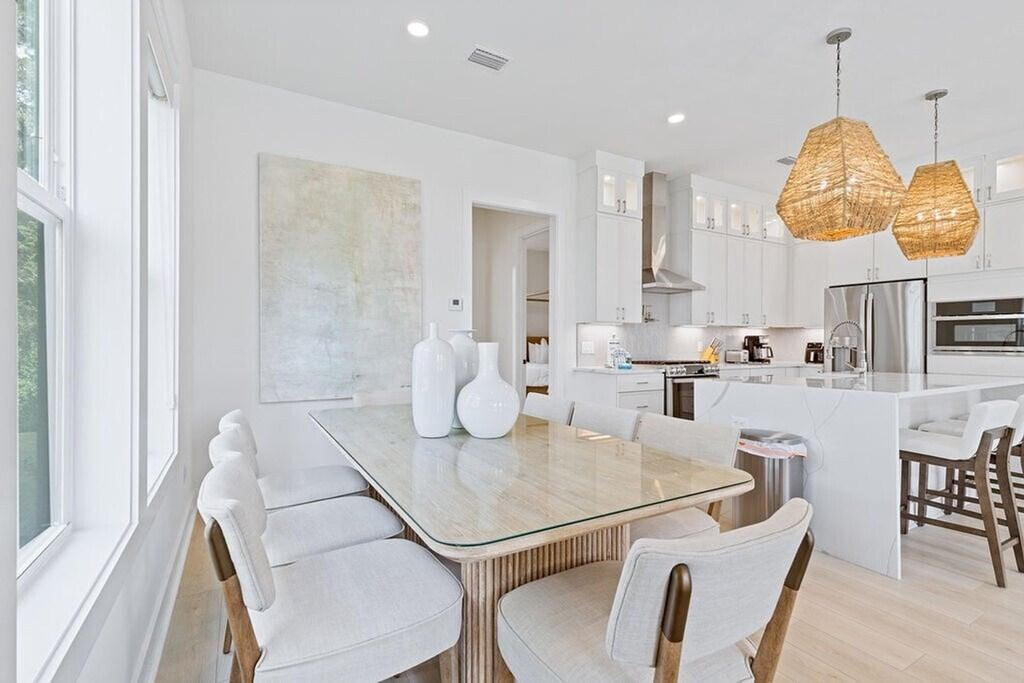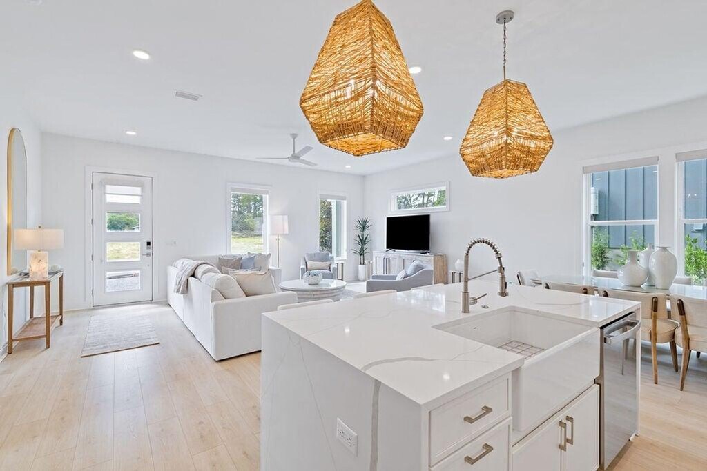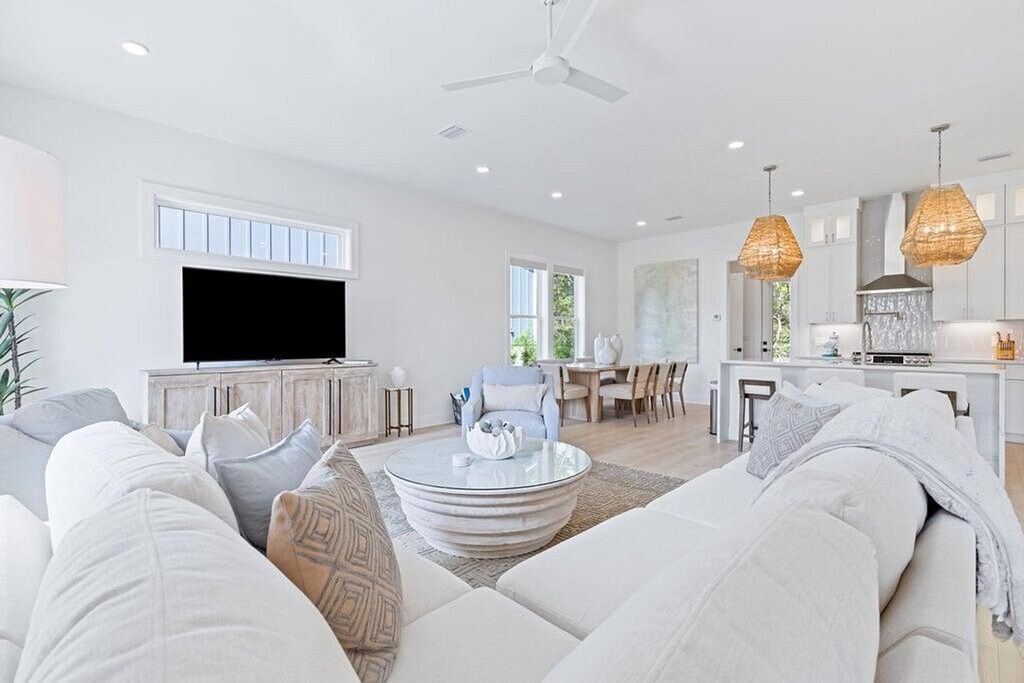 Feel at home in this meticulously decorated and furnished home, designed with a light and breezy coastal feel. This home is designed to be the perfect Inlet Beach getaway. Salt and Sarah combines modern coastal design with high-end finishes. The open-concept kitchen features a large island with seating for four and stainless steel appliances. There is also a dining area with a table seating six and a spacious, airy living room with a large smart TV. This home also features a cozy sitting area with balcony access, perfect for morning coffee or evening relaxation. A complimentary 6-seater golf cart is available for guest use. Community amenities include a neighborhood pool just steps away. Inlet Beach is just minutes away, with sugar-white sand and emerald water ideal for swimming, shelling, sunbathing, and sunset walks. A short drive brings you to the iconic towns of 30A, each offering their own unique charm with boutique shopping, art, events, and coastal architecture. Nearby coastal parks provide hiking trails, picnic areas, birdwatching, and natural dune ecosystems to explore. Rosemary Beach, Seacrest, and Seaside are within minutes and offer beautiful streetscapes, boutique shopping, art galleries, and lively coastal squares. Pets are not allowed. [SI]