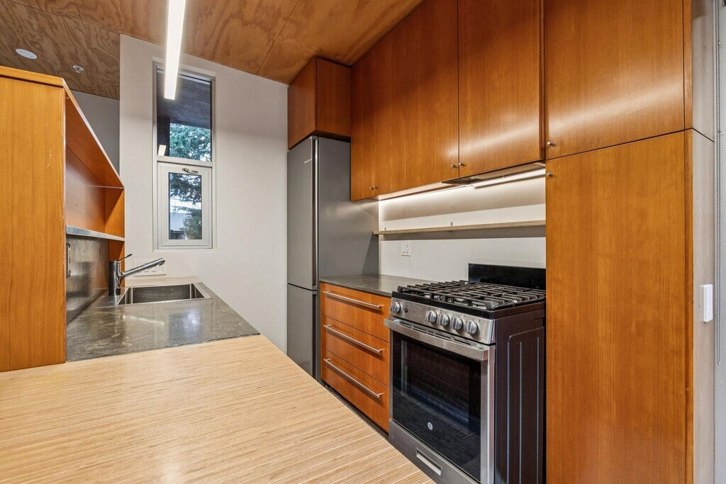 Rare opportunity to rent a modern, thoughtfully designed one-bedroom, one-bath residence with premium finishes in Palo Alto. This home offers approximately 950 square feet of well-designed living space, complemented by a private patio and an additional 140 square feet of dedicated storage. Tall ceilings, skylights, and floor-to-ceiling windows fill the home with natural light, creating an open and airy atmosphere throughout. A bonus office or sitting room provides flexible space for working from home or relaxing. High-end finishes include sleek cabinetry, elegant limestone countertops, a built-in desk with shelving, and an impressive 18-foot-long closet with an Elfa modular storage system. The fully equipped kitchen is paired with a separate laundry room featuring a washer, dryer, sink, and additional storage. Tenant pays a $300/month utility allowance. Pets considered on a case-by-case basis. Ideally situated near Stanford University, Palo Alto Medical Center, California Avenue, and downtown Palo Alto shopping and Caltrain stations, with easy access to Highway 101 and Interstate 280. Leasing services provided by Robinson & Company Realtors, professional property managers. Initial 12-month lease term preferred. Please contact Amanda at to schedule a private tour. Shown by appointment only.