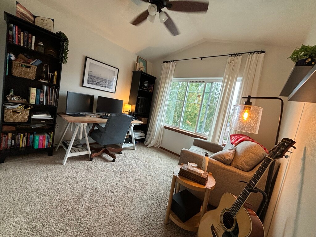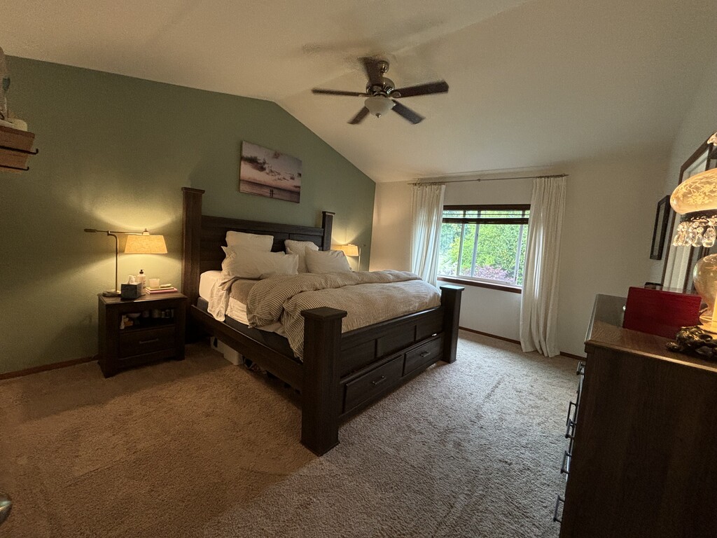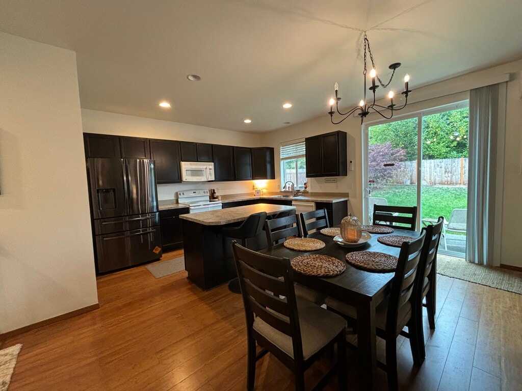 Walking into this 4 bed, 2.5 bath home you are greeted with an open entry with high ceilings, a turned staircase, and beautiful bamboo flooring. The great room includes the kitchen, dining, and cozy living area with electric fireplace. The kitchen has a large island and walk-in pantry with enough room for your food products and kitchen appliances. Ductless mini split in great room provides A/C come this summer! Upstairs are 4 bedrooms and a full bathroom. Washer and dryer are provided and laundry room is located upstairs by bedrooms. The large primary suite features an accent wall and has a walk-in closet and 5 piece bath. The back yard is flat and fenced, with a small patio. This home is centrally located to both Bangor and Bremerton bases.