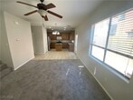 Beautiful three-bedroom home with an open, bright floor plan and great curb appeal. Kitchen and Bath has granite countertops, stainless steel appliances, an island, pantry, dining nook, built-in microwaves, and tile floors. Large master bathroom with tub/shower combo, double sinks, and a massive walk-in closet. NEW PAINT THRU OUT Tile and brand-new carpet throughout, with a half bathroom and all appliances included. Enjoy easy-care desert landscape and a gated community.