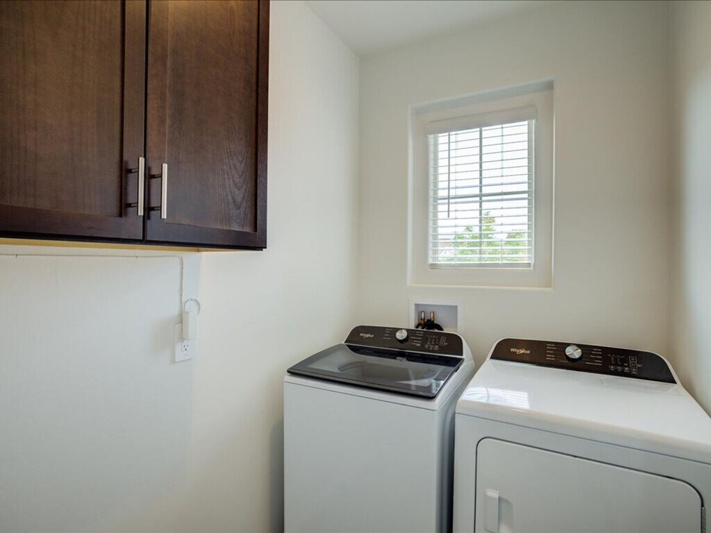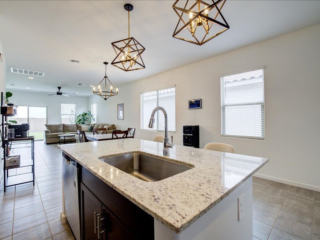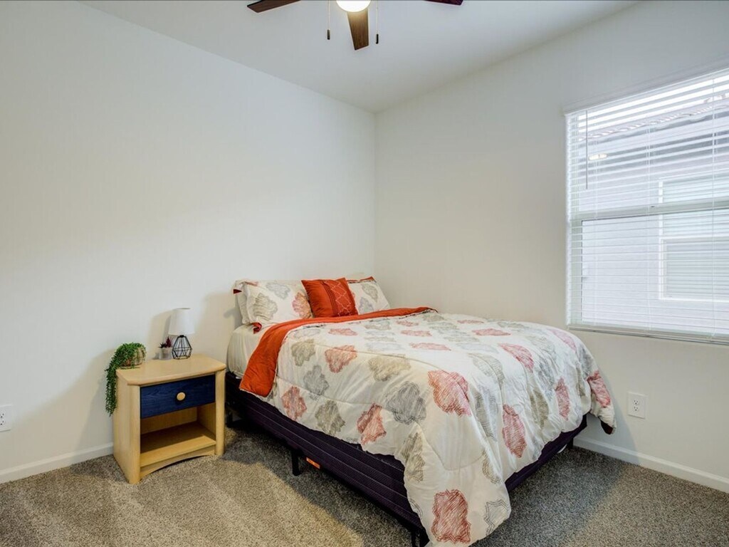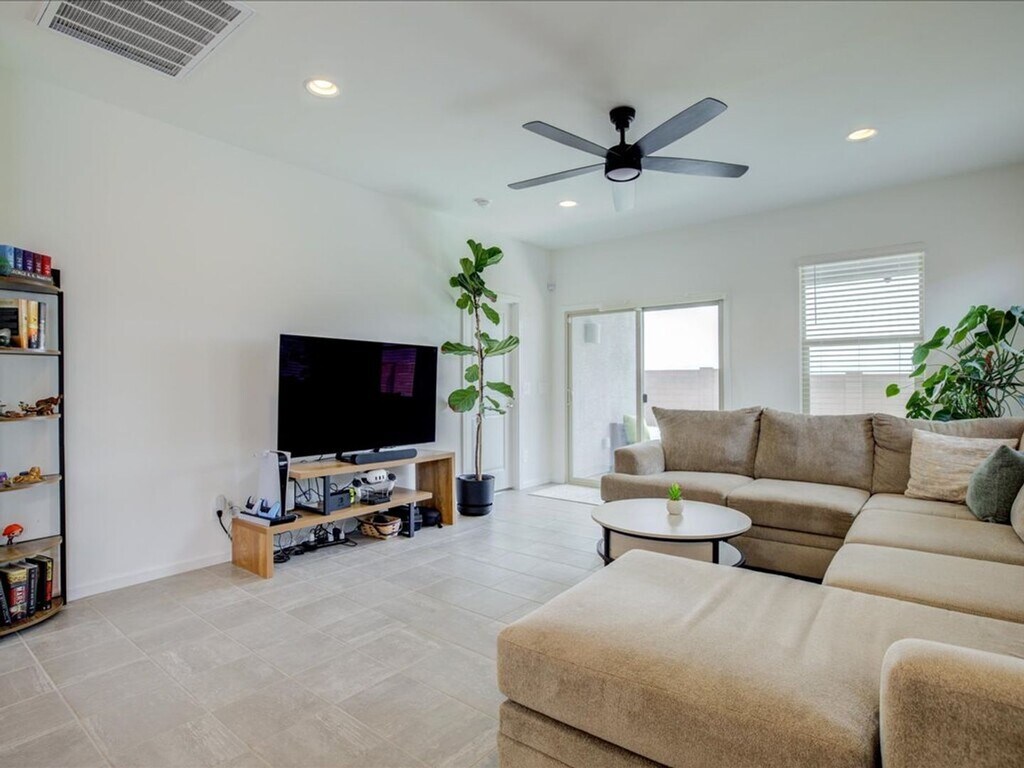 Welcome to this beautifully designed three-bedroom, two-bathroom home featuring a two-car garage and a thoughtfully laid-out open floor plan. Enjoy a bright and airy open dining area that flows seamlessly into a spacious kitchen complete with a kitchen island, stainless steel appliances, a pantry, and plenty of extra cabinet space—perfect for cooking and entertaining! The home is filled with natural light thanks to large open windows in the living and dining areas. Tile flooring runs throughout the main living spaces, while all bedrooms are comfortably carpeted and include ceiling fans. Each bedroom offers generous space along with roomy closets for all your storage needs. The primary suite features a double sink vanity for added convenience, and the home also includes a washer and dryer with additional cabinet storage in the laundry area! Step outside to a large enclosed backyard featuring a covered porch, low-maintenance gravel, and turf—ideal for relaxing or entertaining.This home truly has it all space, comfort, and modern touches throughout! This home truly has it all—space, style, and amenities designed for comfortable living! **No cats, Only dogs upon owner approval ( 2 Pet Max) Interested in this property, Contact Linnda-Jo at ; OK to text! Apply on 1. No Evictions 2. Credit Score 600 or above 3. Applicant must make 3X the rent 4. Account setup fee $400.00 5. 2 years of residential history 6. Valid form of identification 7. Pet Fee $500.00 per each pet, NON-REFUNDABLE - IF ALLOWED! 8. Residents 18 or older must submit an application 9. Application fees $65, no refunds, NO EXCEPTIONS! 10. Monthly Admin Fee $30.00