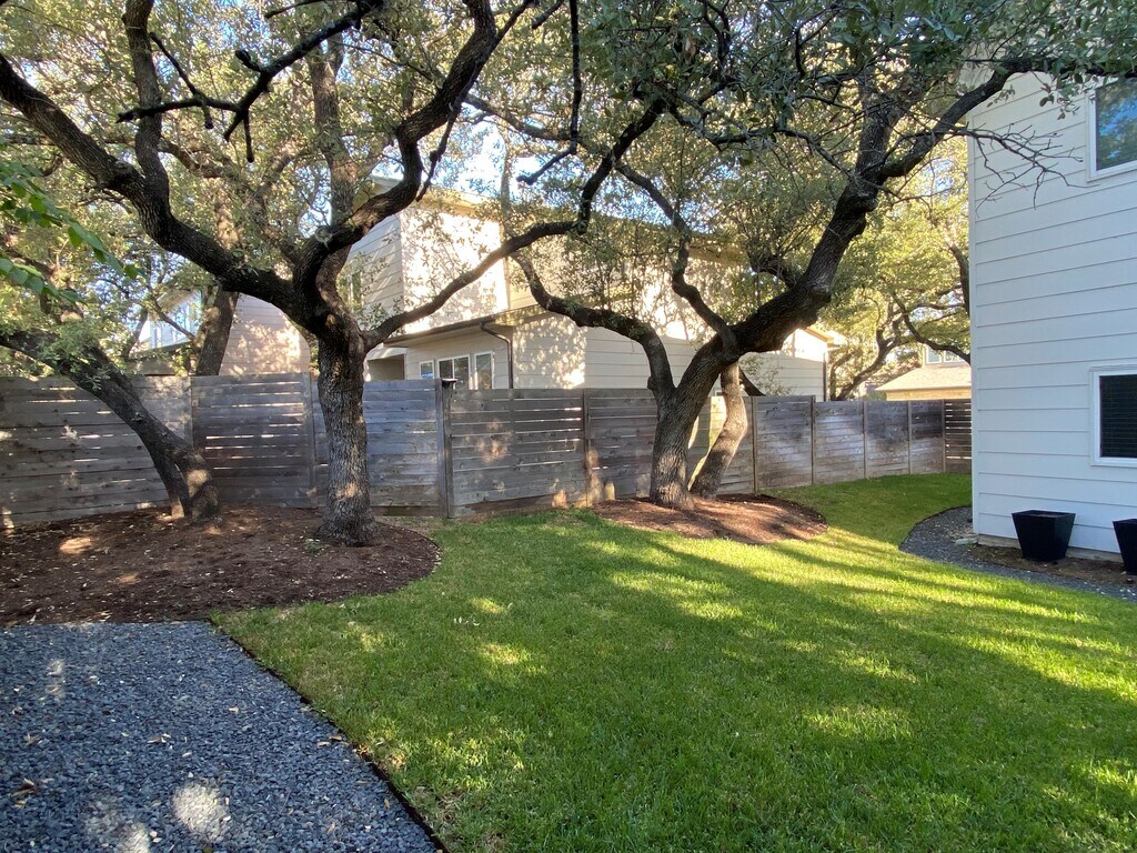 Wonderful opportunity to live in the highly desirable gated community of Soma Village in 78745. Quiet, safe, and friendly neighborhood with well maintained common area. This 2018-built condominium boasts an open lay-out with great natural light and high quality finishes, hardwood floors, Master bedroom downstairs, flex space upstairs for second living or office space, and a landscaped low maintenance yard with covered patio and large live oak trees. Stainless steel appliances in kitchen. Refrigerator and front loading washer and dryer are included. Energy efficient build with home remaining cool all day with thermostat up during the Austin heat. 2 car garage allows for parking and plenty of storage space along the sides. Prime South Austin location in the heart of Garrison Park- walkable to coffee shops(Cannon, Summer Moon), grocery(Sprouts), restaurants & CVS. Easy access to Westgate Shopping center(Central Market), Whole Foods, parks, and trails. Located within 15-20 minutes to downtown Austin and the airport. Dogs allowed. No cats. Available Dec 1, 2025. No Smoking Allowed Indoors. No cats. Renter responsible for City of Austin Utilities bill and gas bill. Owner pays HOA fee. Security system available at Renter cost.