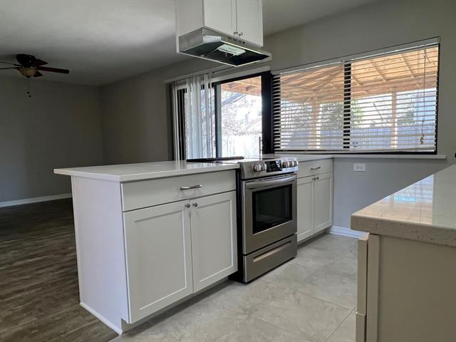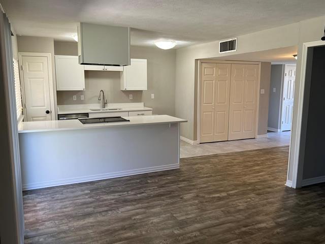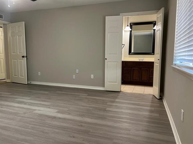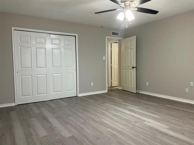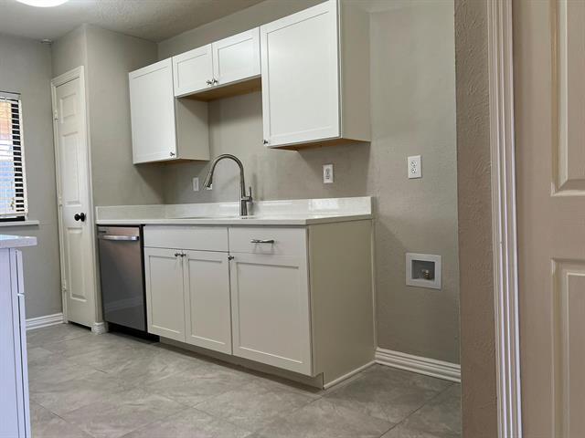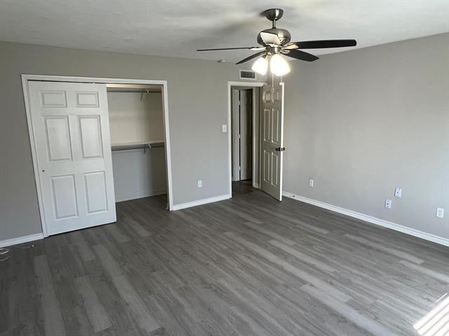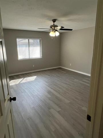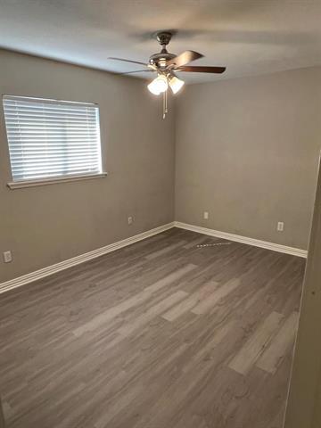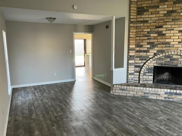 Welcome home to this move-in ready charmer in southwest Arlington close to Lake Arlington and I 20! Arlington has tons of options for new tenatns with entertainment, sports options and amusement parks all within 20 minutes from the house. The walls have a fresh coat of essential gray with white trim and newly installed laminate flooring. The decorative fireplace is set in the family room with tons of natural light. The home offers two dining areas and two living areas for the growing family. Kitchen has white cabinets and black appliances overlooking the backyard which has a huge covered patio to enjoy your spring evenings. The bedrooms are all reasonable sized with ceiling fans and great sized closets. The master is in the rear of the home for privacy and features new flooring for the new tenants.
