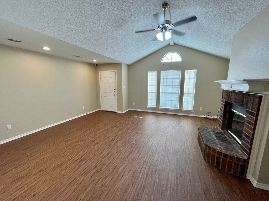 Charming 3-Bedroom with a Big Backyard! This lovely 3 bed, 2 bath home has everything you need to feel right at home—vaulted ceilings, a cozy wood-burning fireplace, and an open kitchen that flows into a sunny breakfast nook with backyard access. Step outside to enjoy a spacious fenced yard, a large covered patio (about 15x15), and a handy storage unit—great for weekend hangouts or quiet evenings under the stars. The Primary Suite features a roomy bathroom and walk-in closet. All bedrooms are bright and comfortable, with ceiling fans and plenty of closet space. You'll find durable vinyl flooring throughout most of the home, with fresh carpet in the bedrooms and neutral paint throughout. There’s a 2-car garage with an automatic opener, and hookups are ready for your washer, dryer, and fridge. Tenant covers electric and water through the City of Fort Worth. Want to see it in person or learn more? Visit