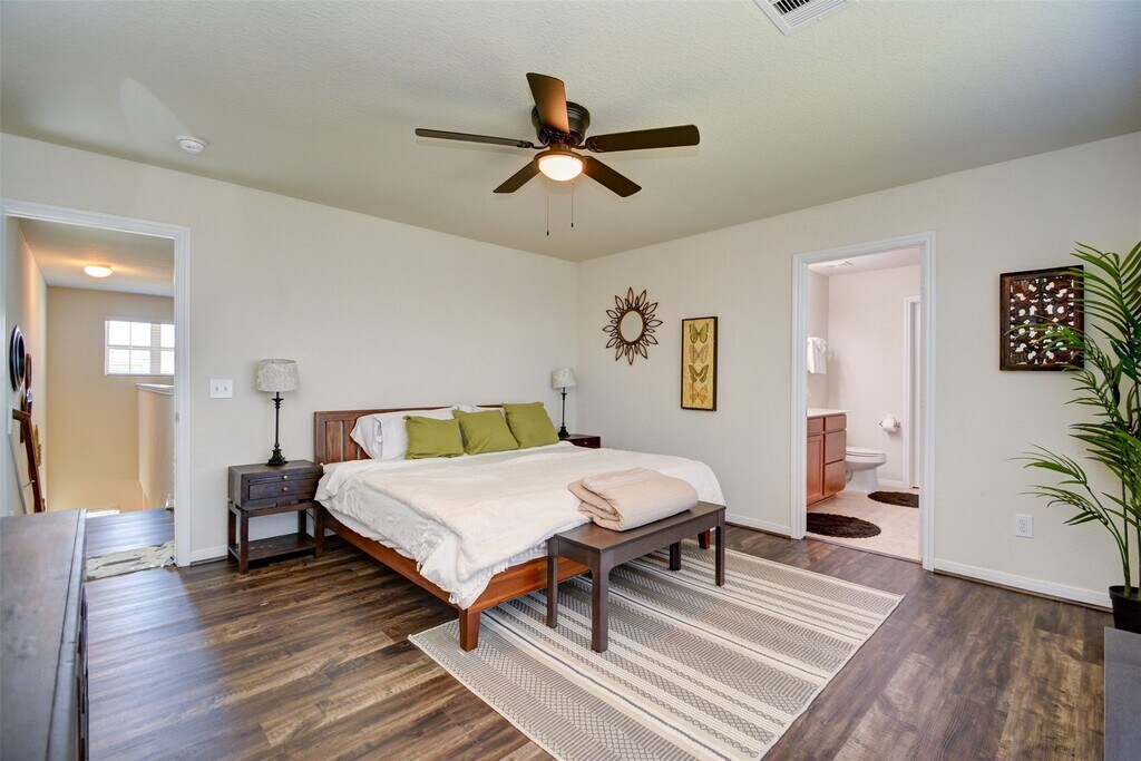 Welcome Home to this immaculate 4 bed,3 bath home. Quiet Neighborhood close to Beltway 8,Hobby Airport only a 10 minute drive and downtown Houston only 20 minutes away. Property has laminate and tile flooring throughout,no carpet. Welcome into the main living space with open concept living,dining and kitchen area. Kitchen has black appliances,access to the backyard,granite counters and plenty of storage. 1 bed down with full bathroom. 2 car garage with double driveway. Go upstairs to the game room surrounded by Primary Suite overlooking backyard. 2 secondary bedrooms,1 full bath and laundry room with washer and dryer included. This property will not disappoint,call today for your personal showing. MLS# 57748916